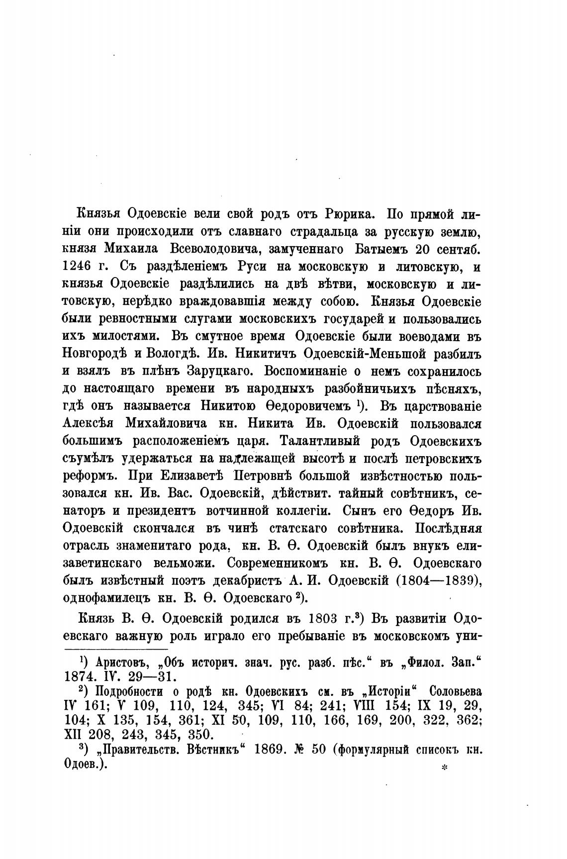 2) Подробности о род'ђ кн. Одоевскихъ см. въ „Истщйи"