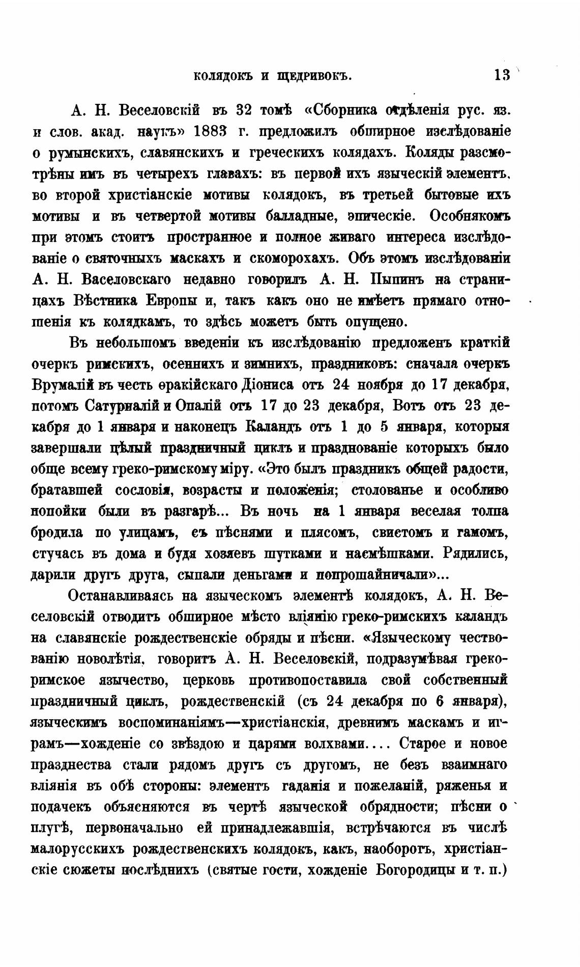 Останавливаясь на языческомъ элементь колядокъ, А, Н. Ве-