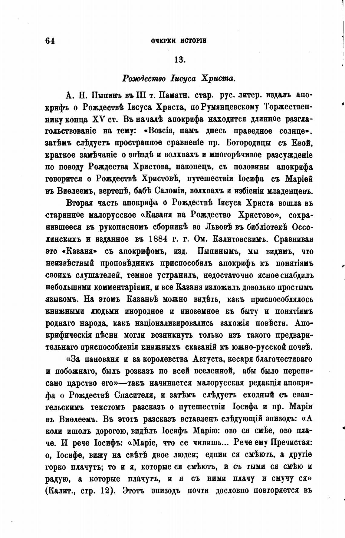 до поводу Рождества Христова, наконецъ, съ половины апокрифа