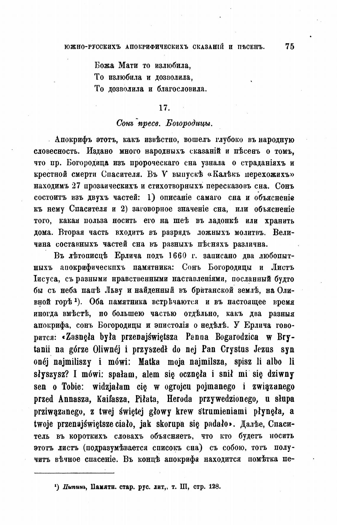 апокрифа, сонь Богородицы и о недЬ'Ь. У Ерлича гово-