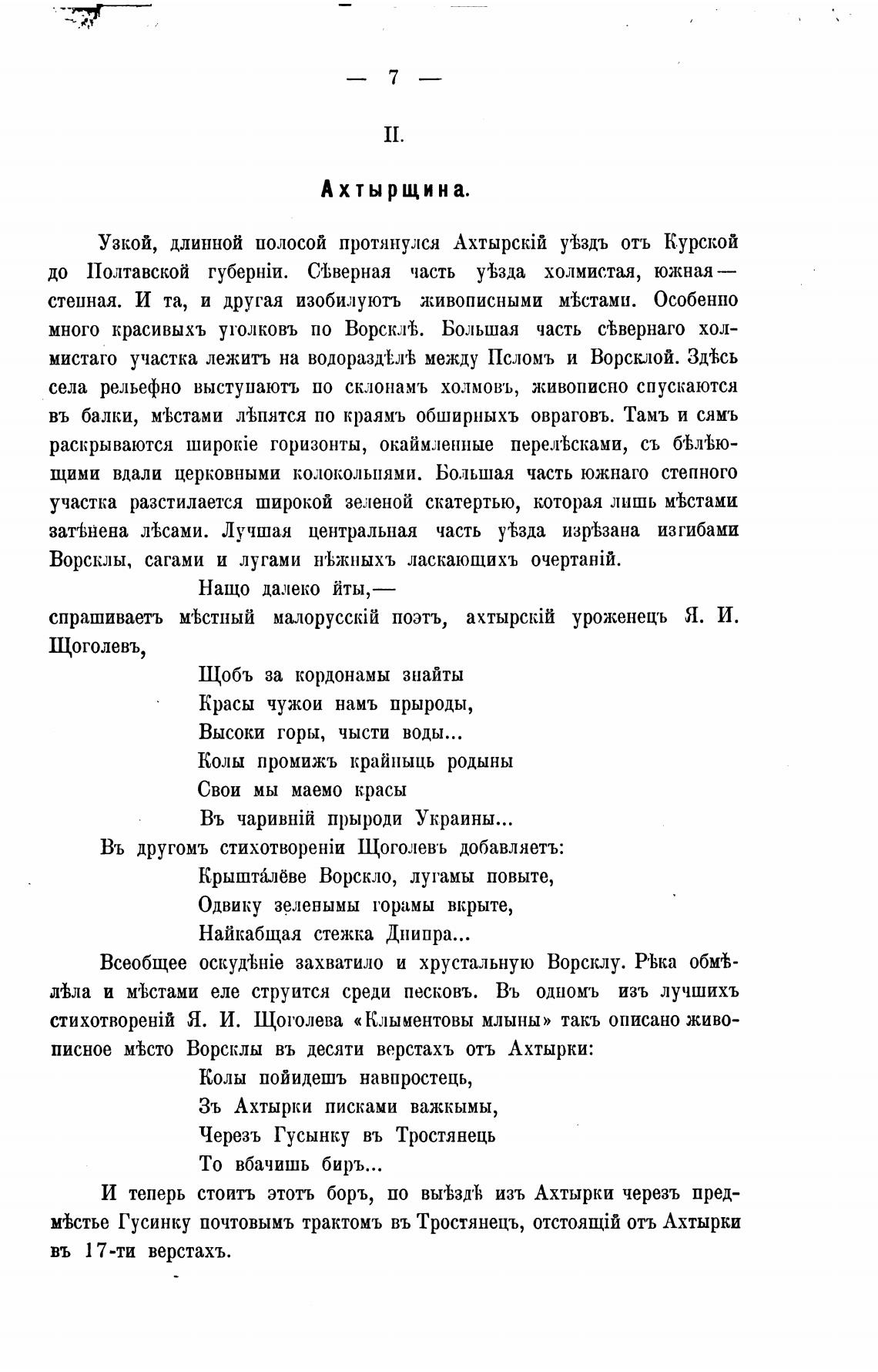 писное MrhcT0 Ворсклы въ десяти верстахъ отъ Ахтырки: