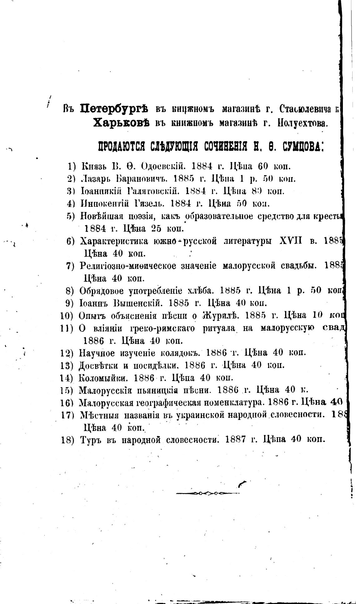 продаются СДЫУЮЩИ СОЧИНИЯ Е. В. СУМЦОВА: