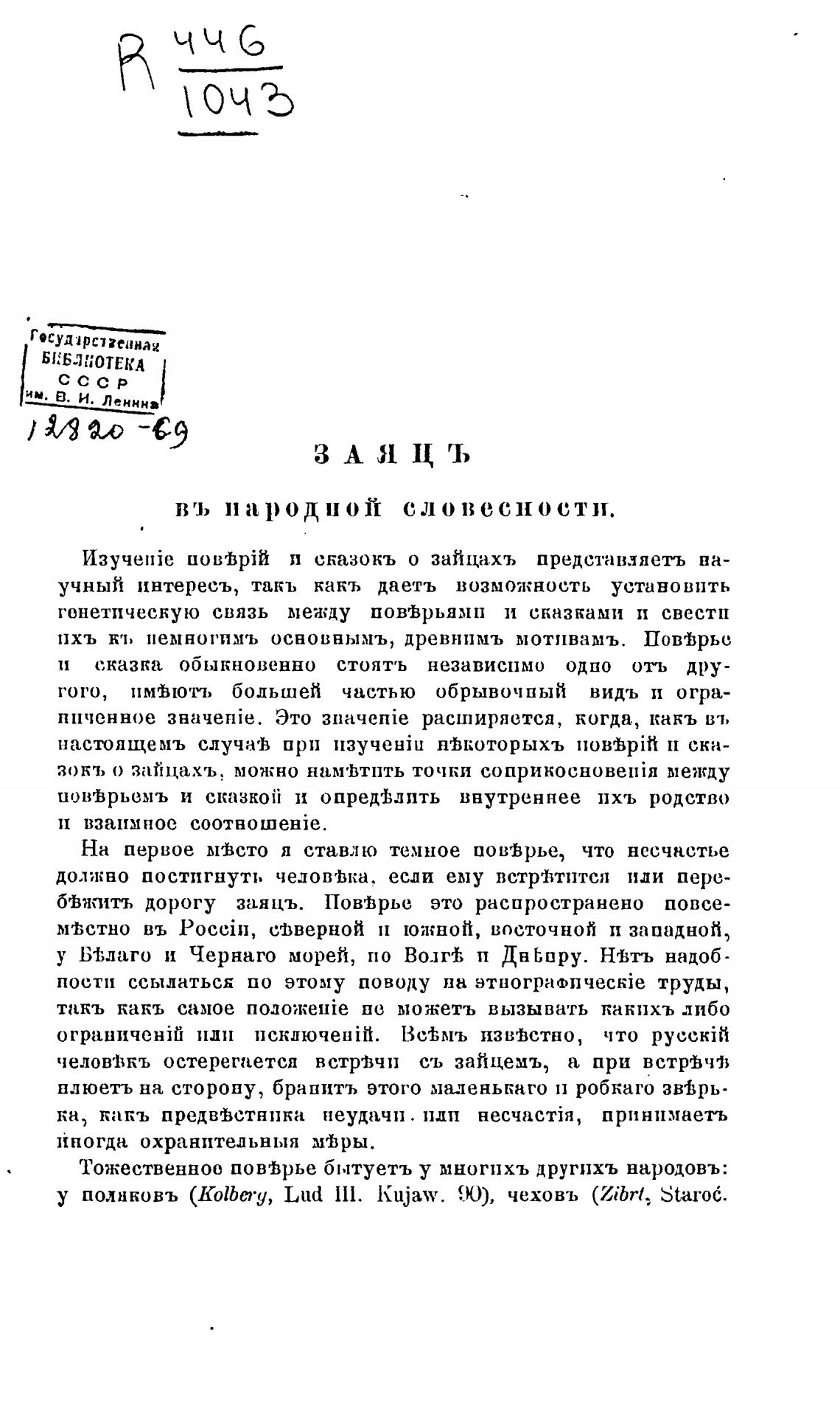 Изучийе uowhpih п сказокъ о за?ща.хъ представзяетъ ва-