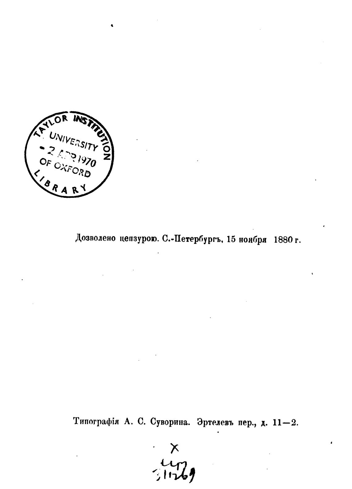 Дозволено цензурою. С..Петербургъ. 15 ноября 1880 т.