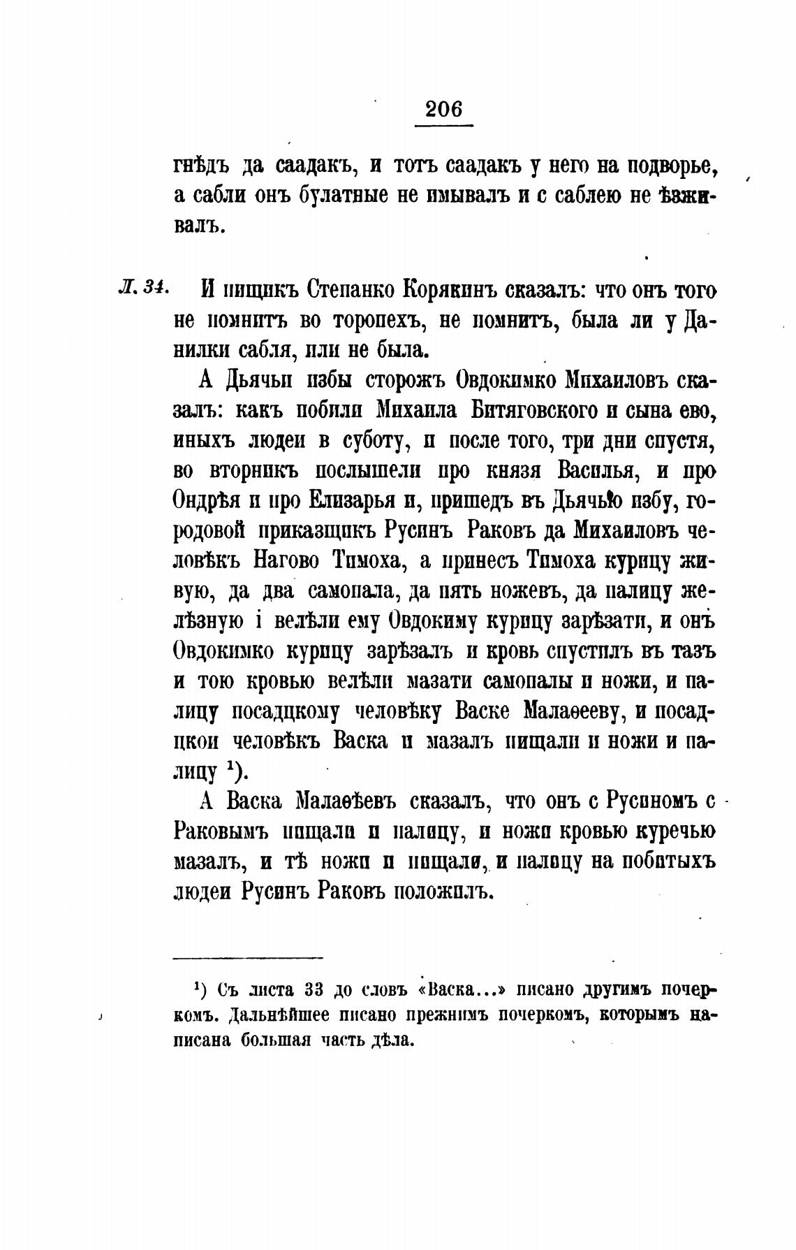 1) съ диста 33 до словъ «Васка...» писано другимъ почер-