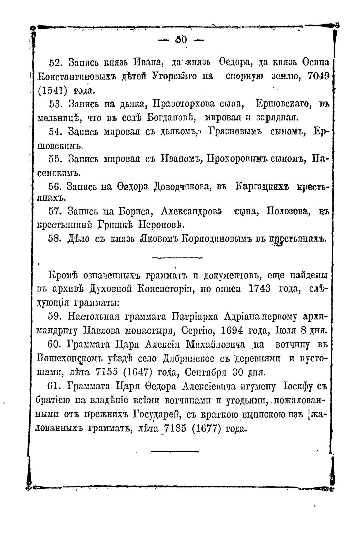 61. Граммата Царя Оедора игумену Тосифу съ