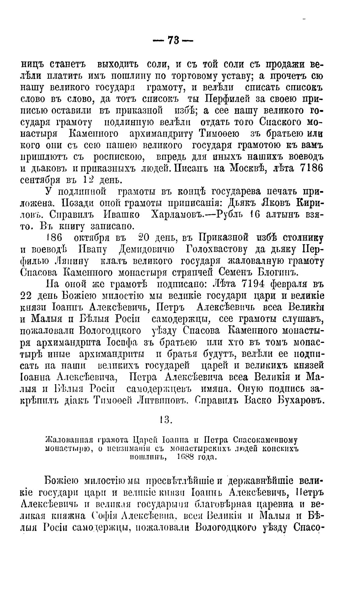 Жалованная грамота Царей 1оаппа Потра Спасокаменпому