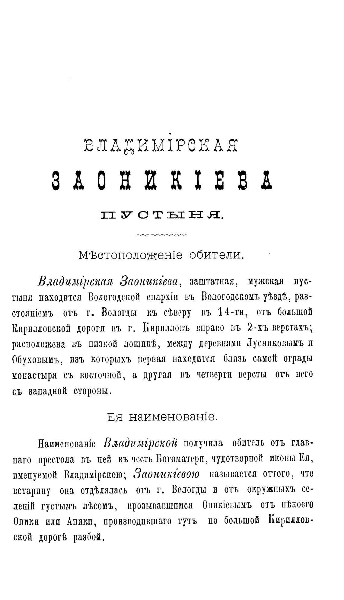 встарпну опа отд%лялас.ь отъ г. ВоЛогды и отъ окружпыхъ се-