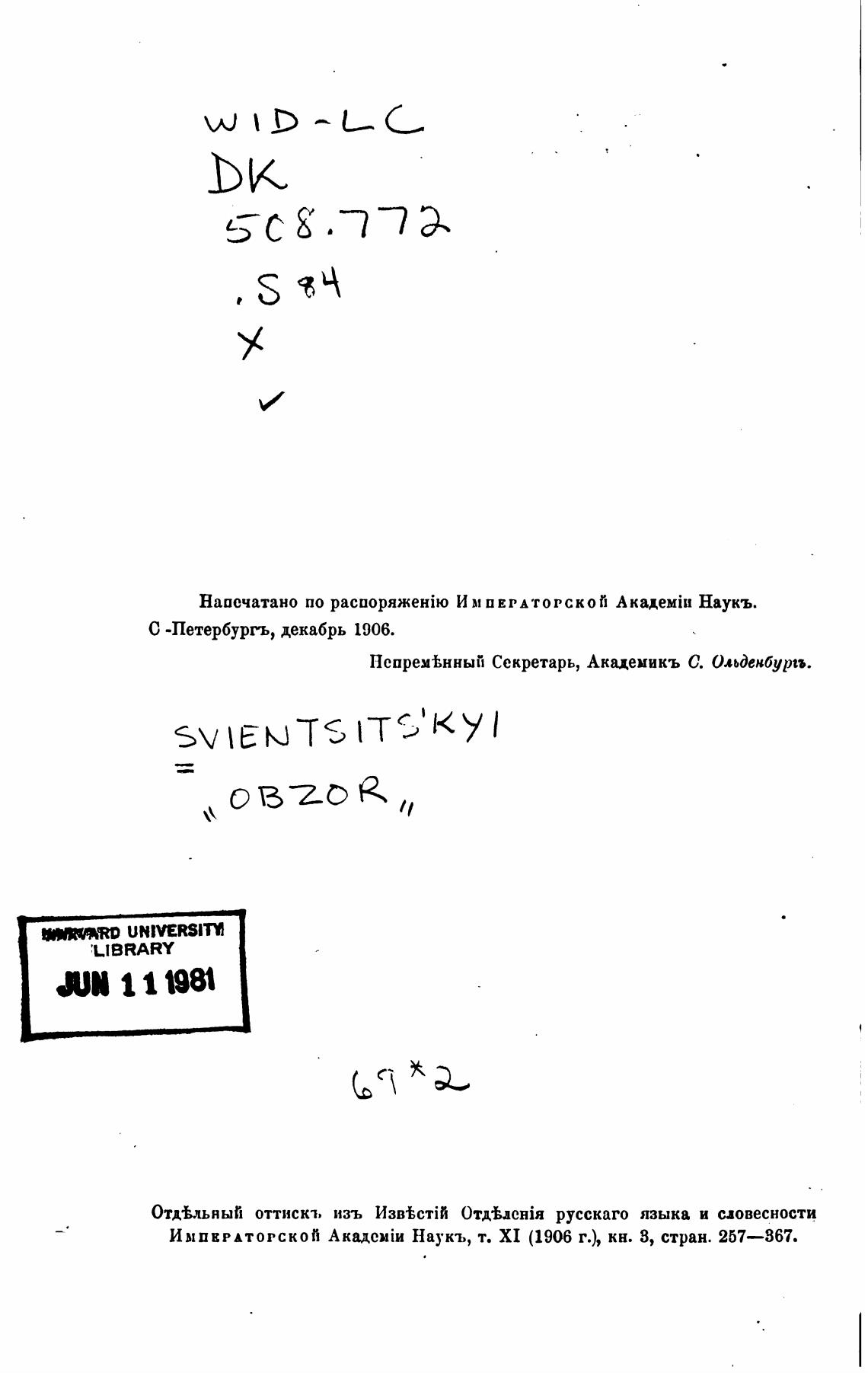 Импкрдторской Наукъ, т. XI (1906 г.), кн. З, стран. 257—867.