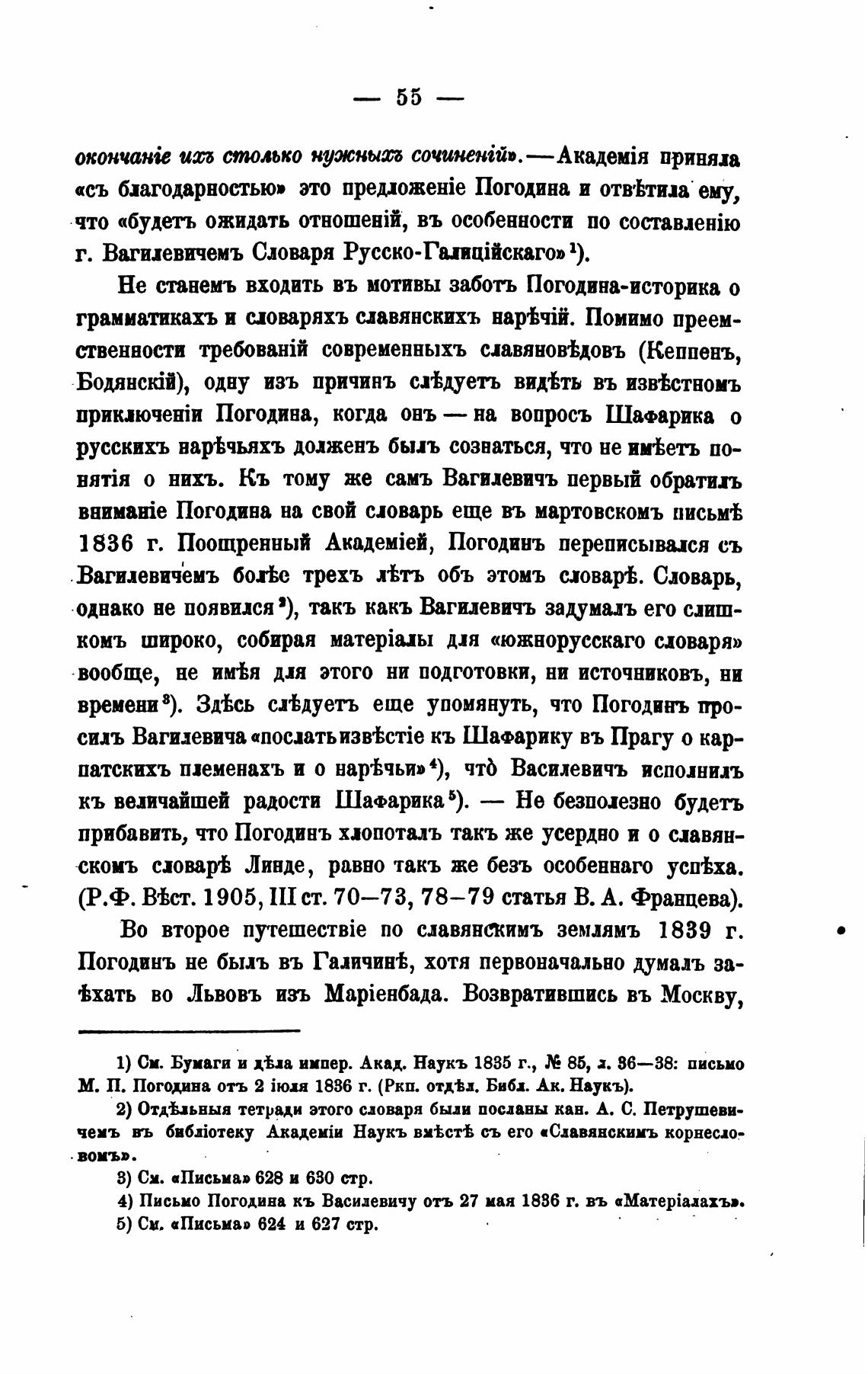4) Письмо Погодина кь Василевичу отъ 27 мая 1886 г. въ aMaTepiaaaxbD.