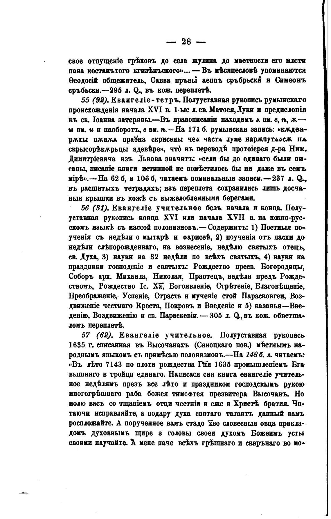 55 (92). EBaHI'exie - тетръ. Полууставная рукопись румынскаго