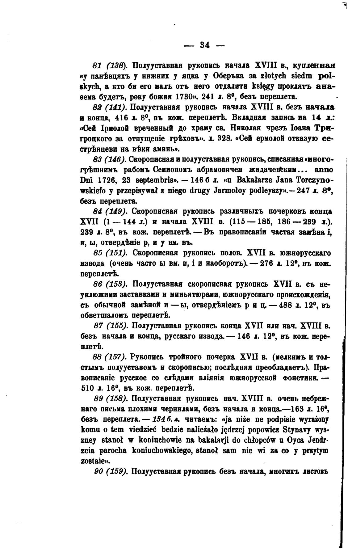безъ переплета. — 134 б. л. читаемъ: нја niie пе podpi8ie wyraiony