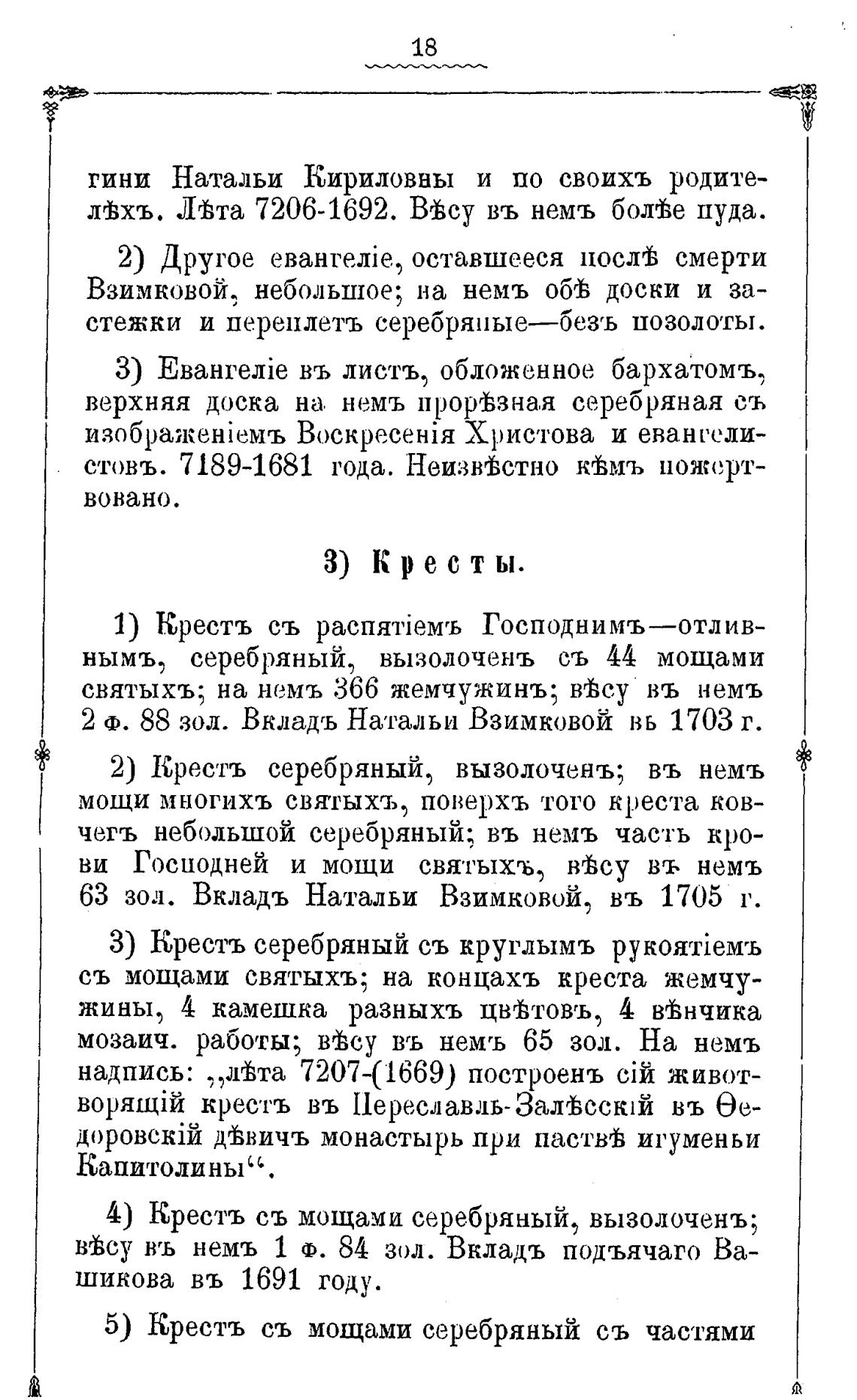 63 зол. Вкладъ Натальи Взимковой, въ 1705 г.