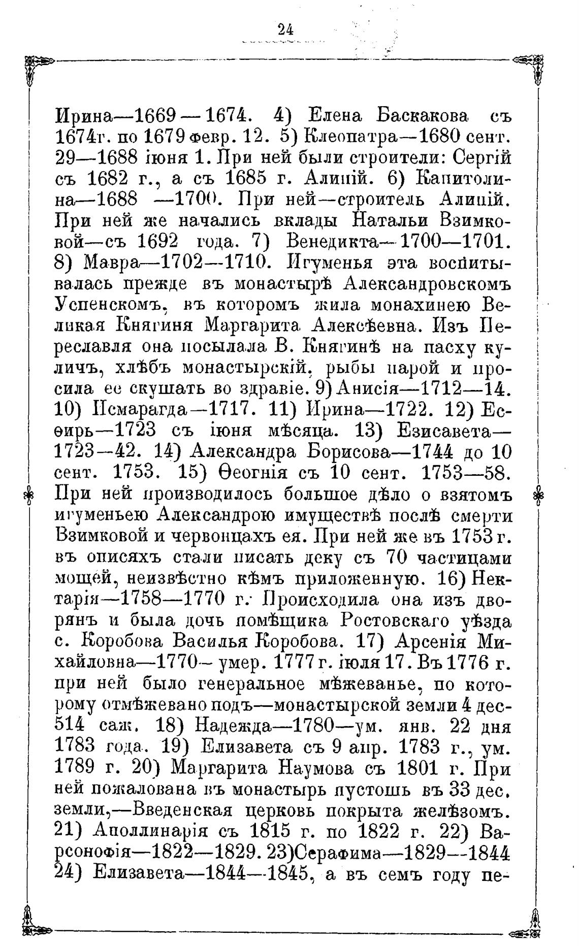 1723—42. 14) Александра Борисова—1744 до 10