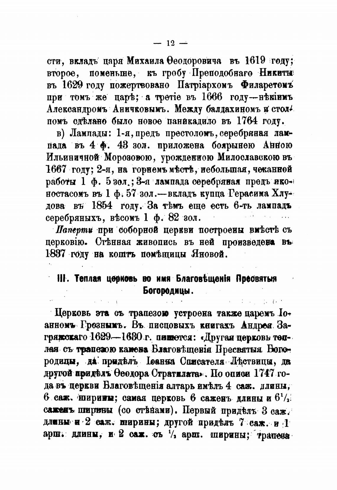 сти, вкладъ царя Михаила ееодоровича въ 1:619 году;