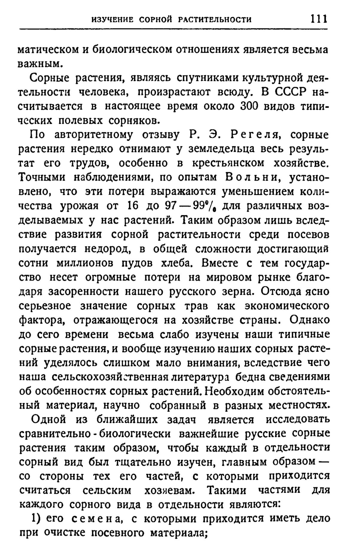 По авторитетному отзыву Р. Э. Р е геля, сорные