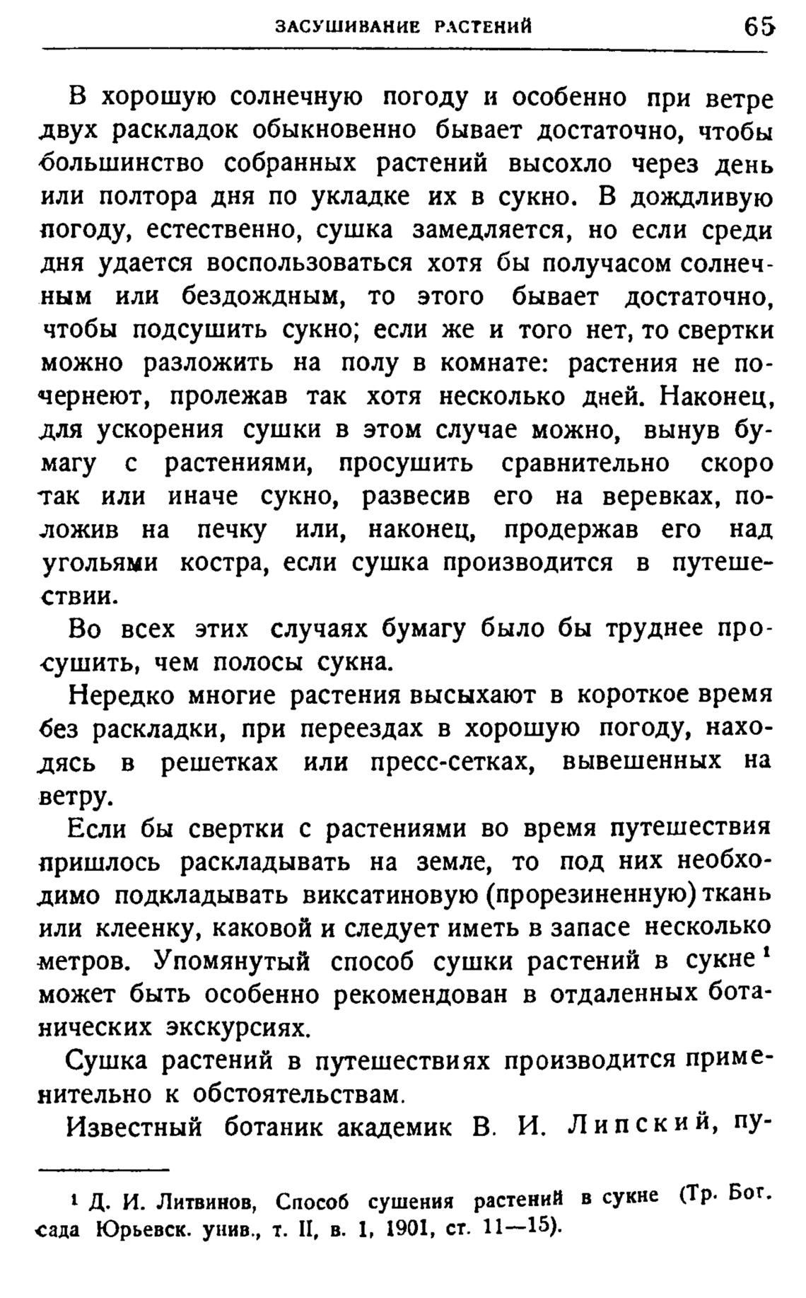 Д. И. Литвинов, Способ сушения растений в сукне (Тр. Бот.