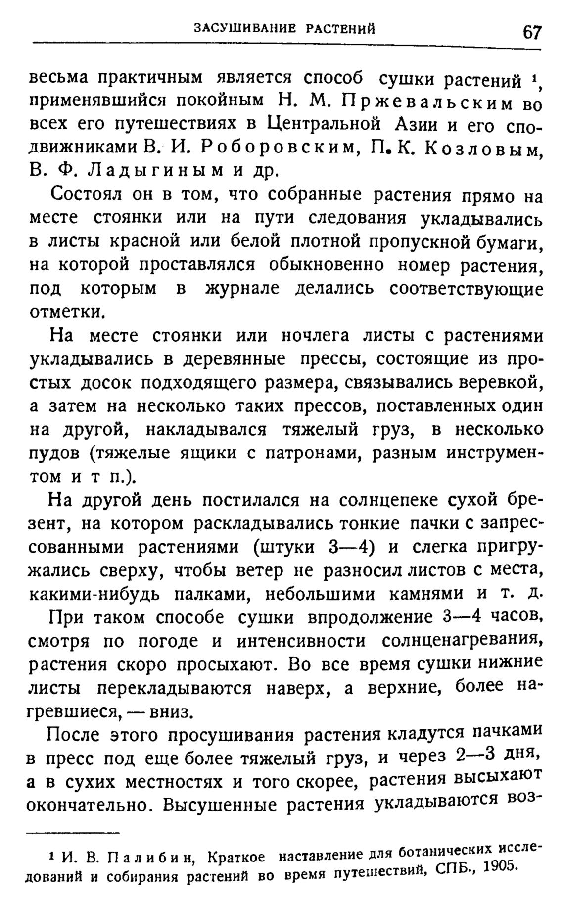 1 И. В. П а л и б и н, Краткое наставление для ботанических иссле-