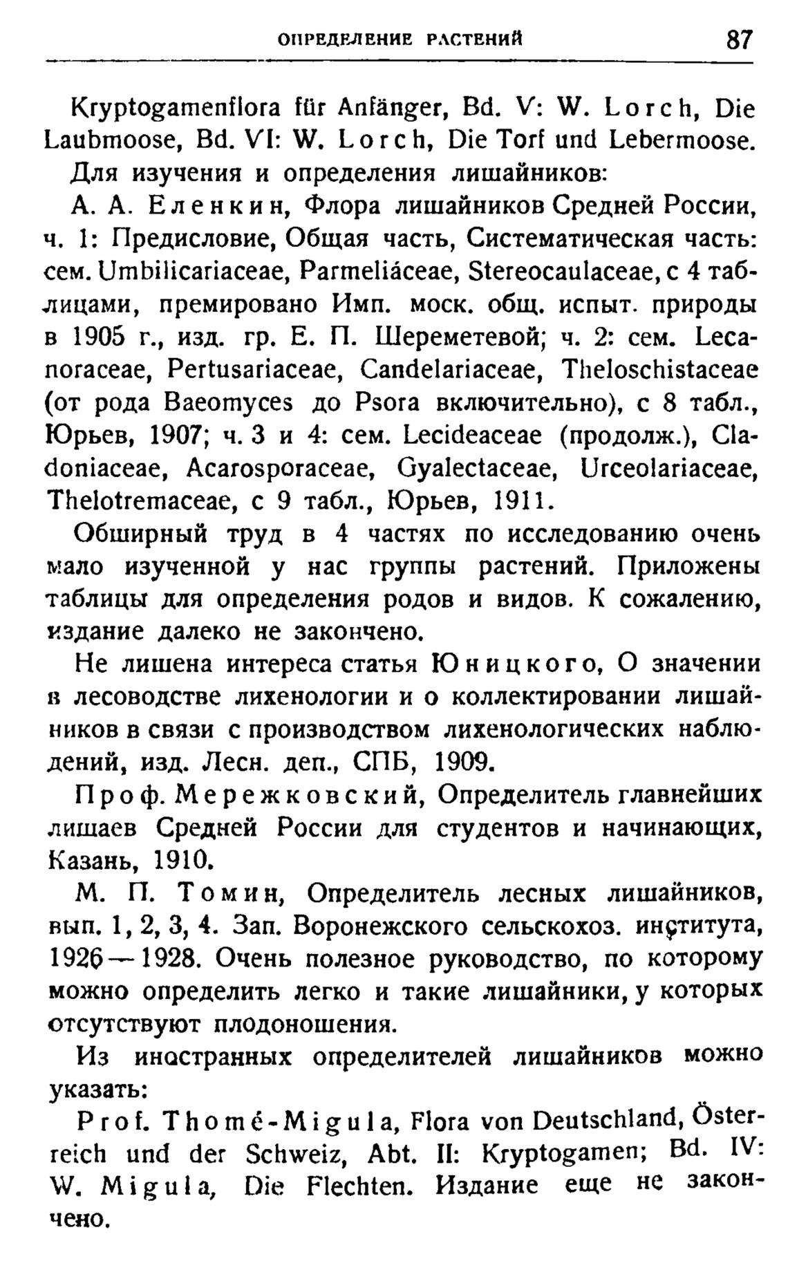 М. П. Том и н, Определитель лесных лишайников,