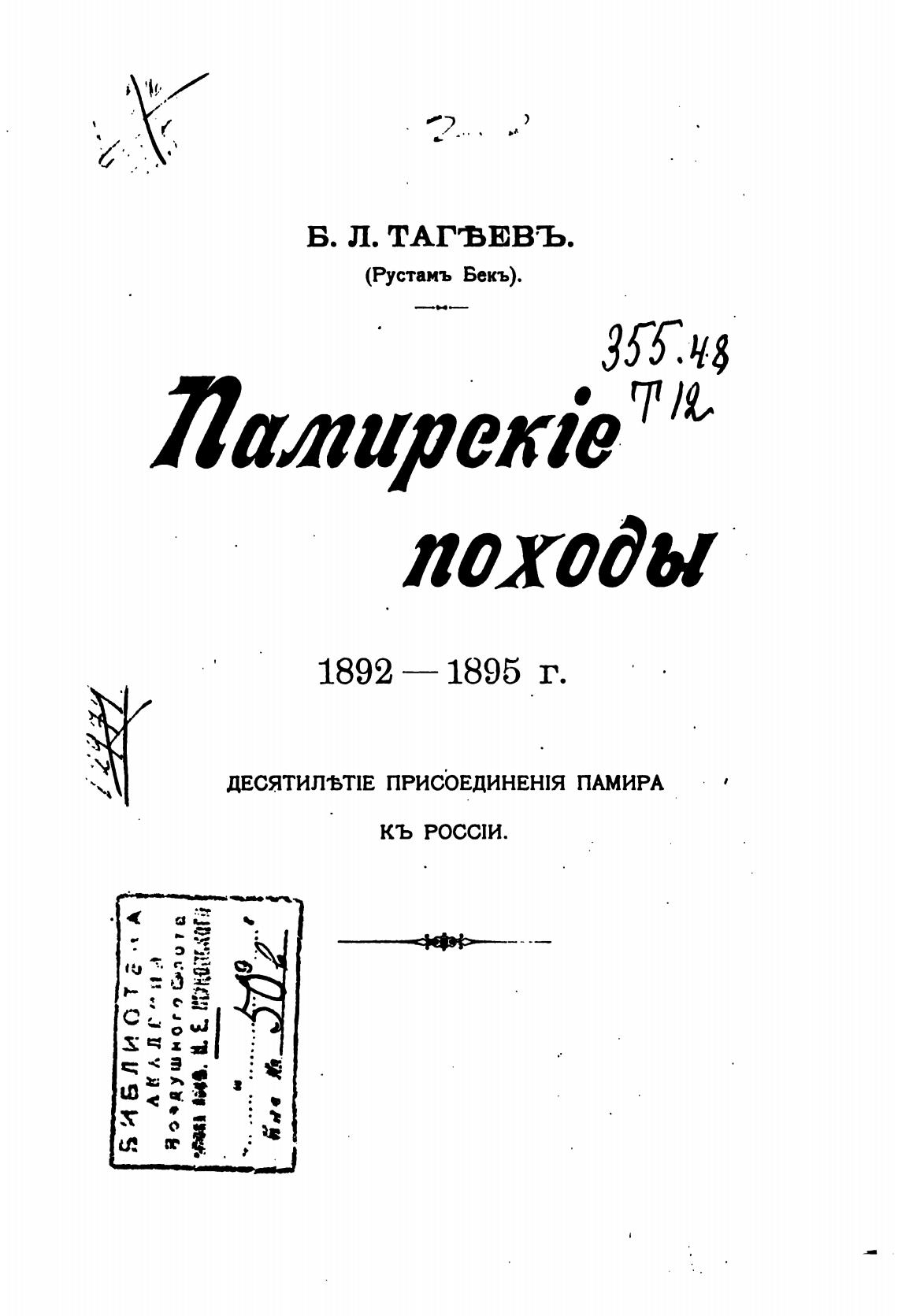 ДЕСЯТИЛЪТЕ ПРИСОЕДИНЕНЯ ПАМИРА