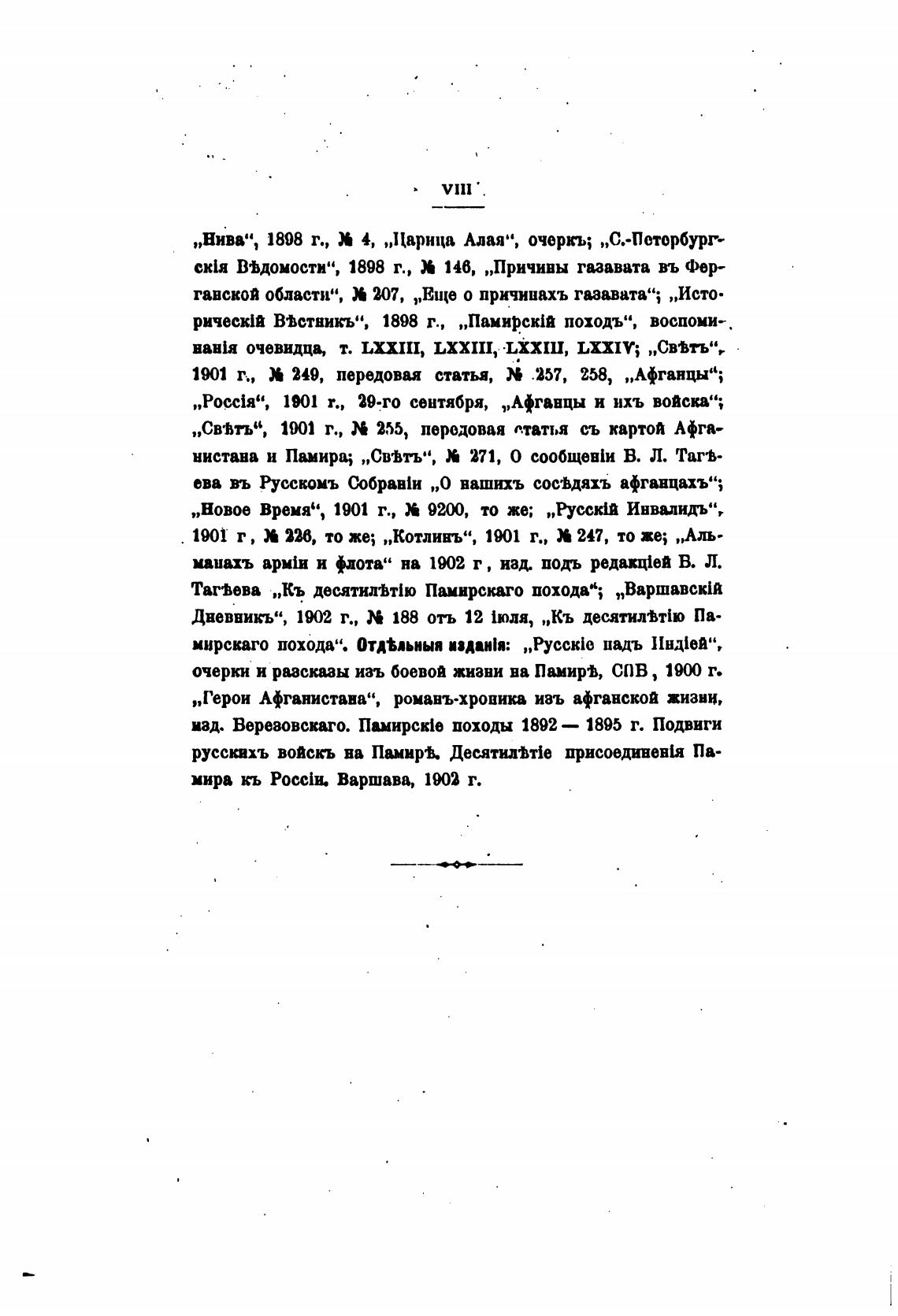 ТатЬева •„Къ десятид•Ьт1ю Памирскаго похода“; „Варшаве“