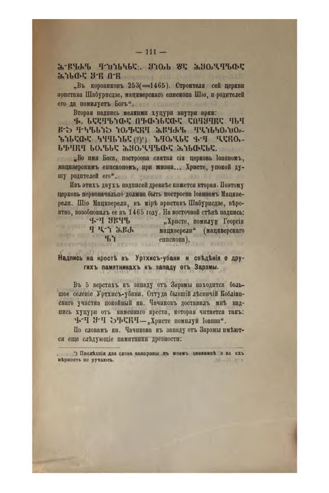 Надпись на кресть въ Уртхисъ-убани и о дру-