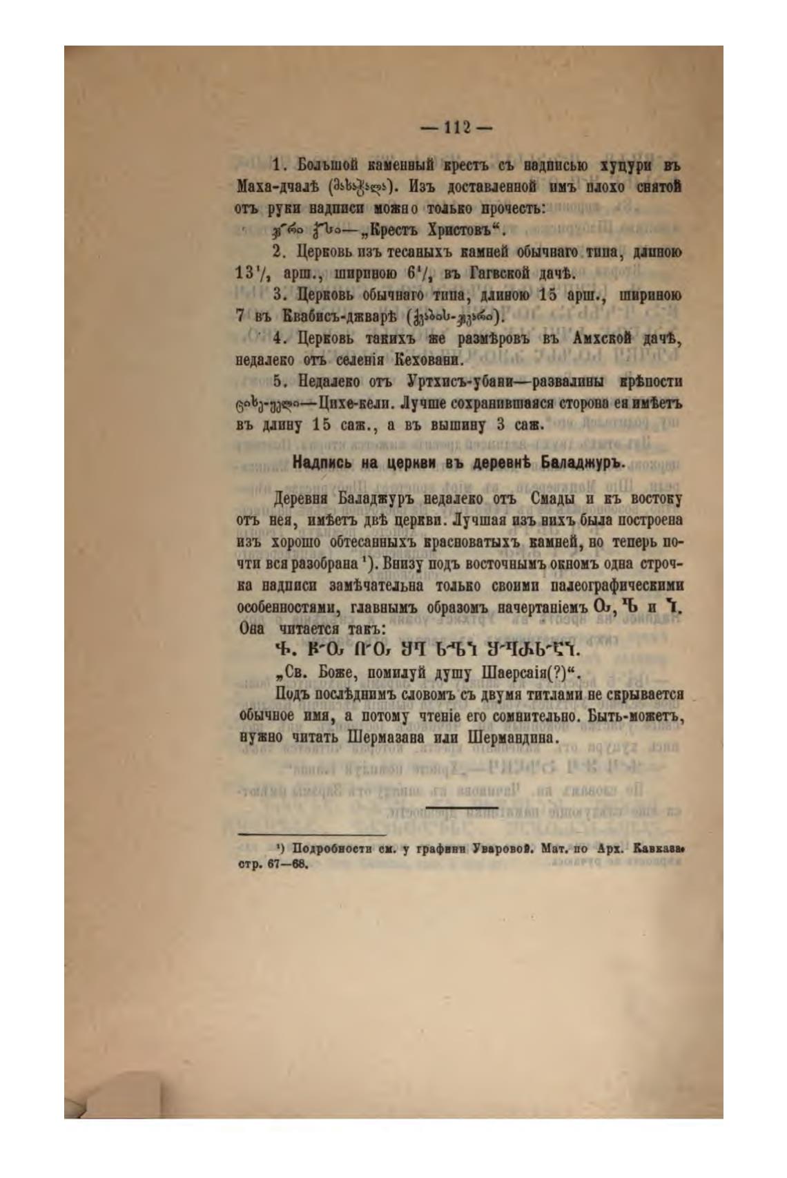 Надпись на церкви въ деревнћ Баладжуръ..