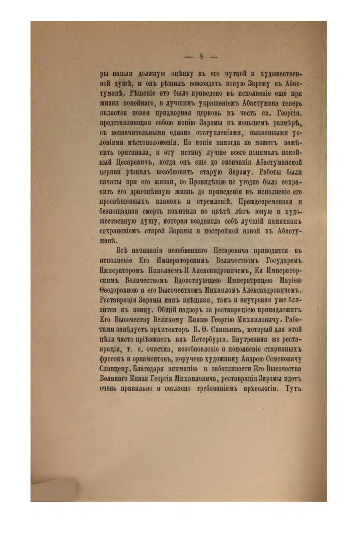 Великаго Князя Георгт Михаиловича, Зарзмы вдеть
