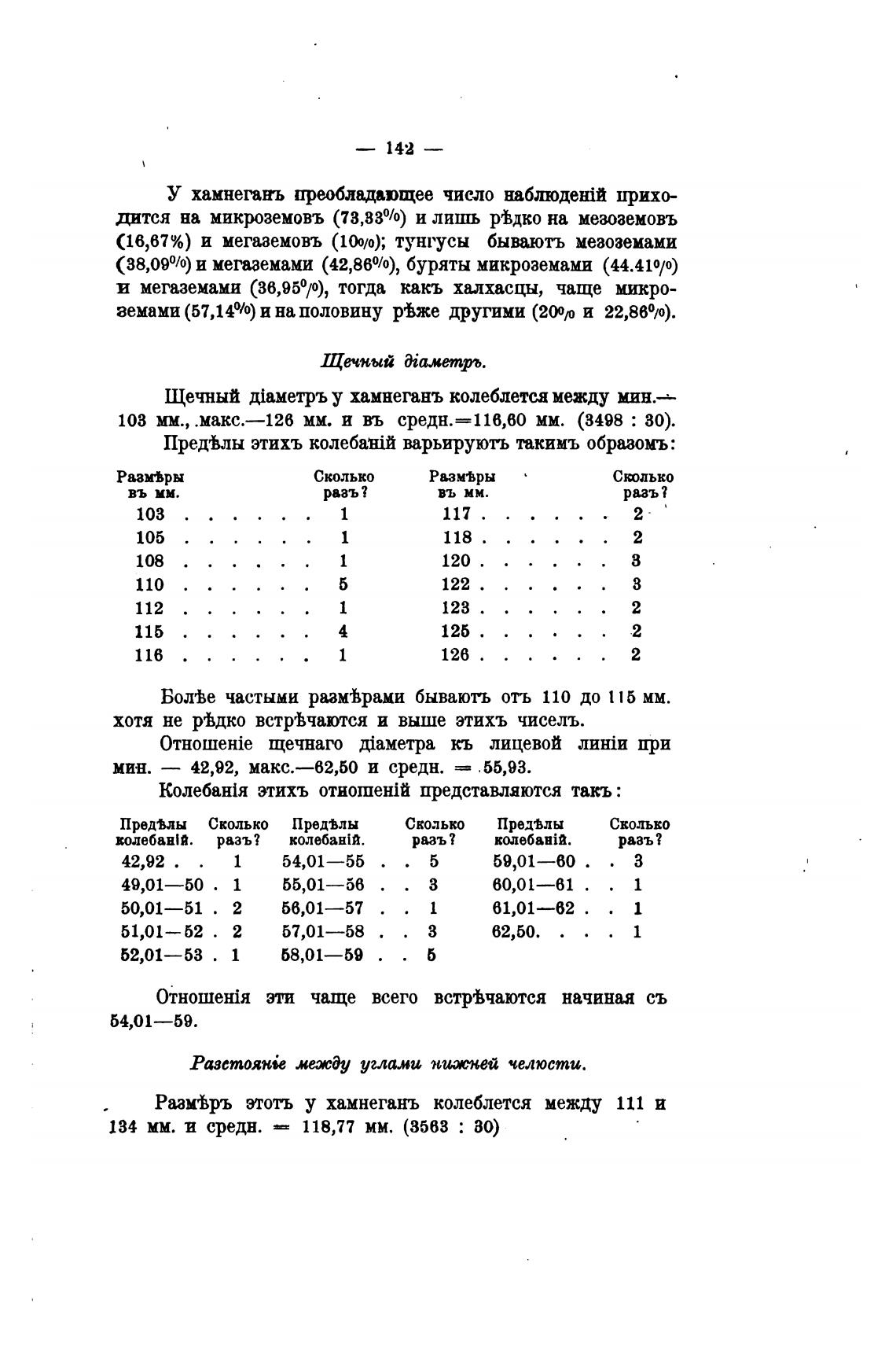 Щечный у хамнеганъ колеблется между мин.—