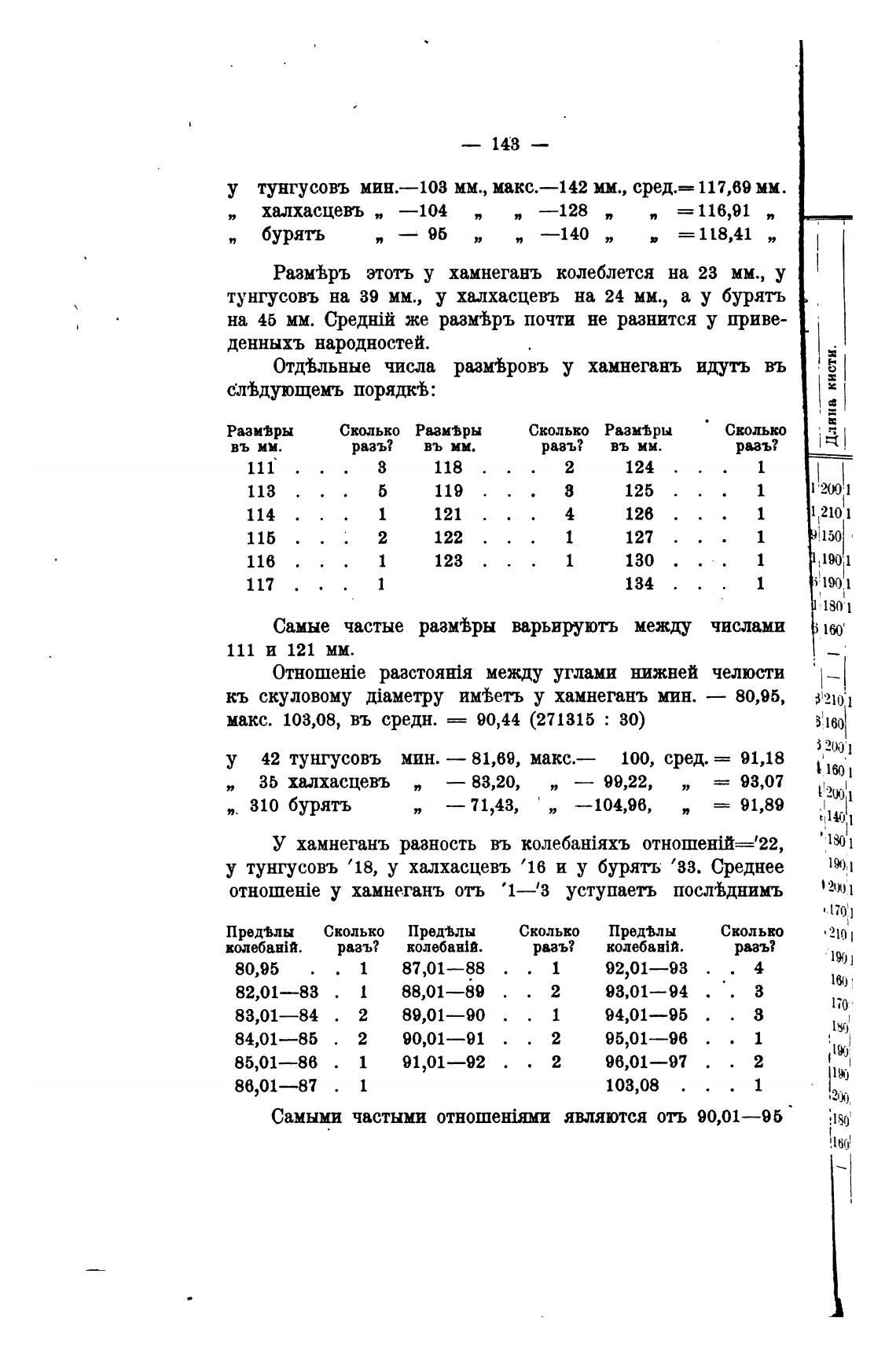 тунгусовъ мин.—103 мм., макс.—142 мм., сред.— 117,69 мм.