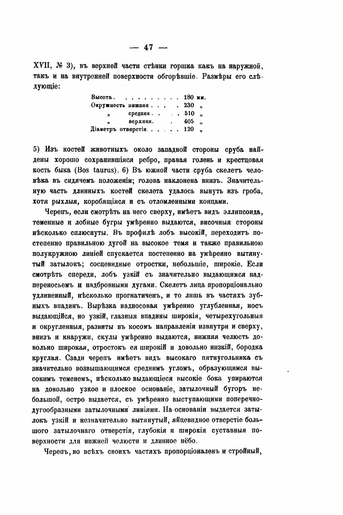 кость быка (Bos taurus). 6) Въ южной части сруба скелеть чело-