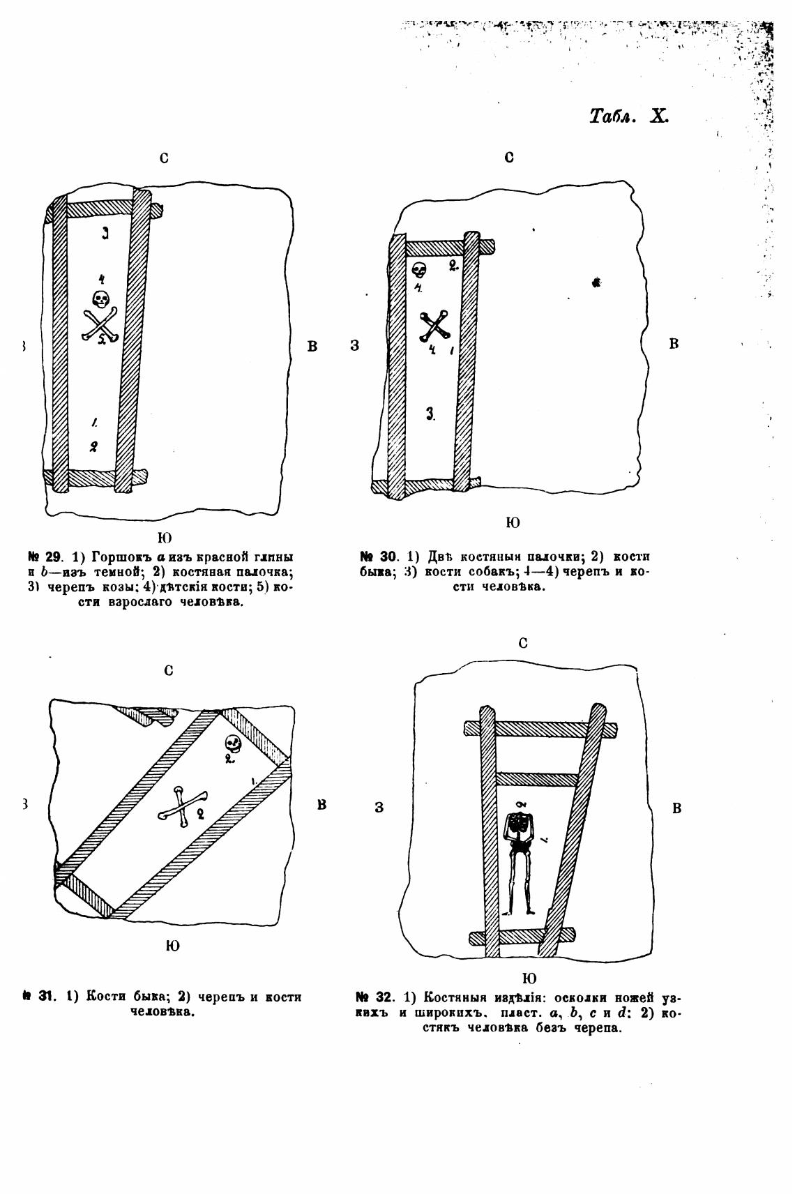 3) кости собвкъ•, 4—4) черепъ и во-