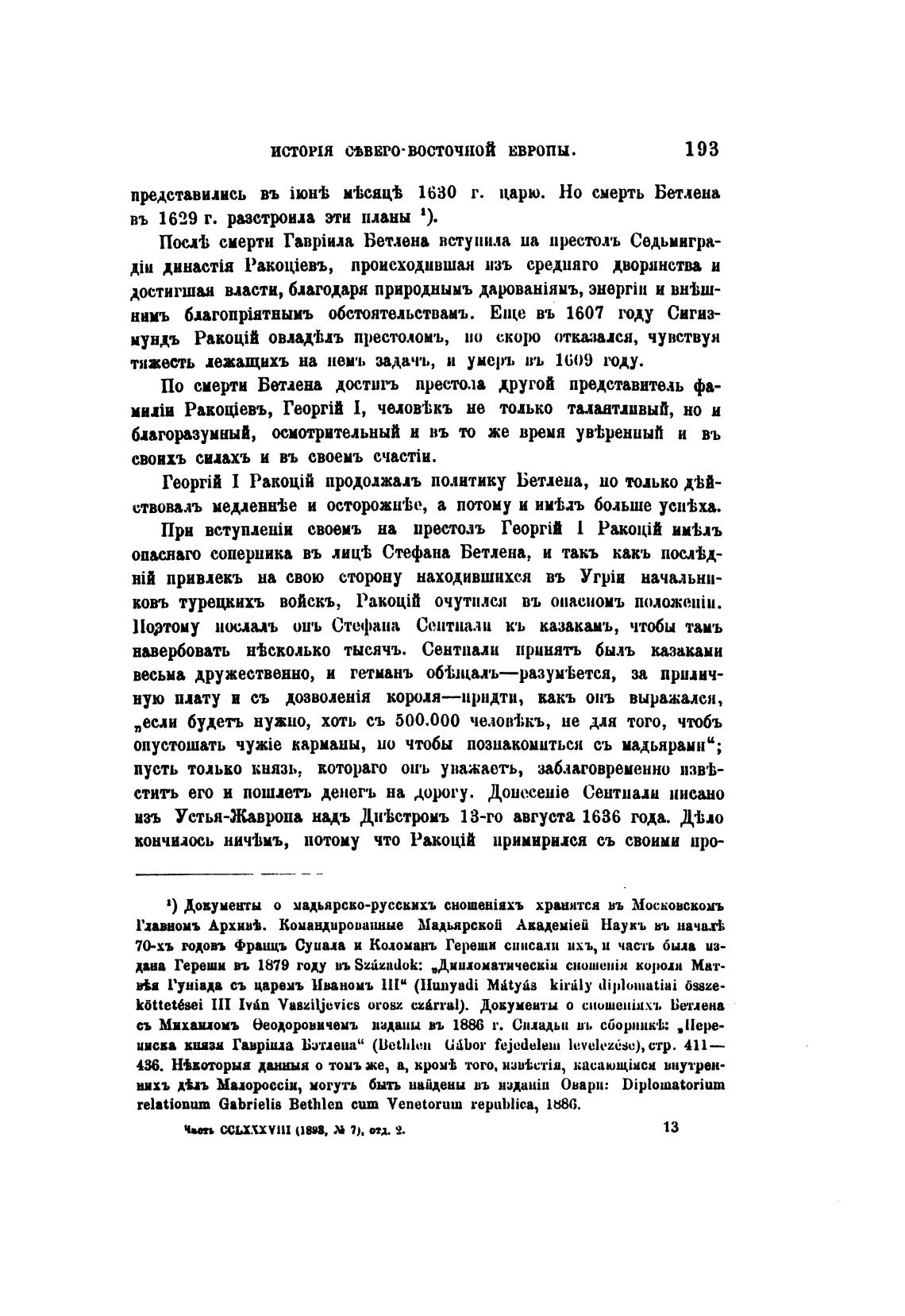 1) Довументы о мадьярсво-русскихъ хранится нь Московскомъ