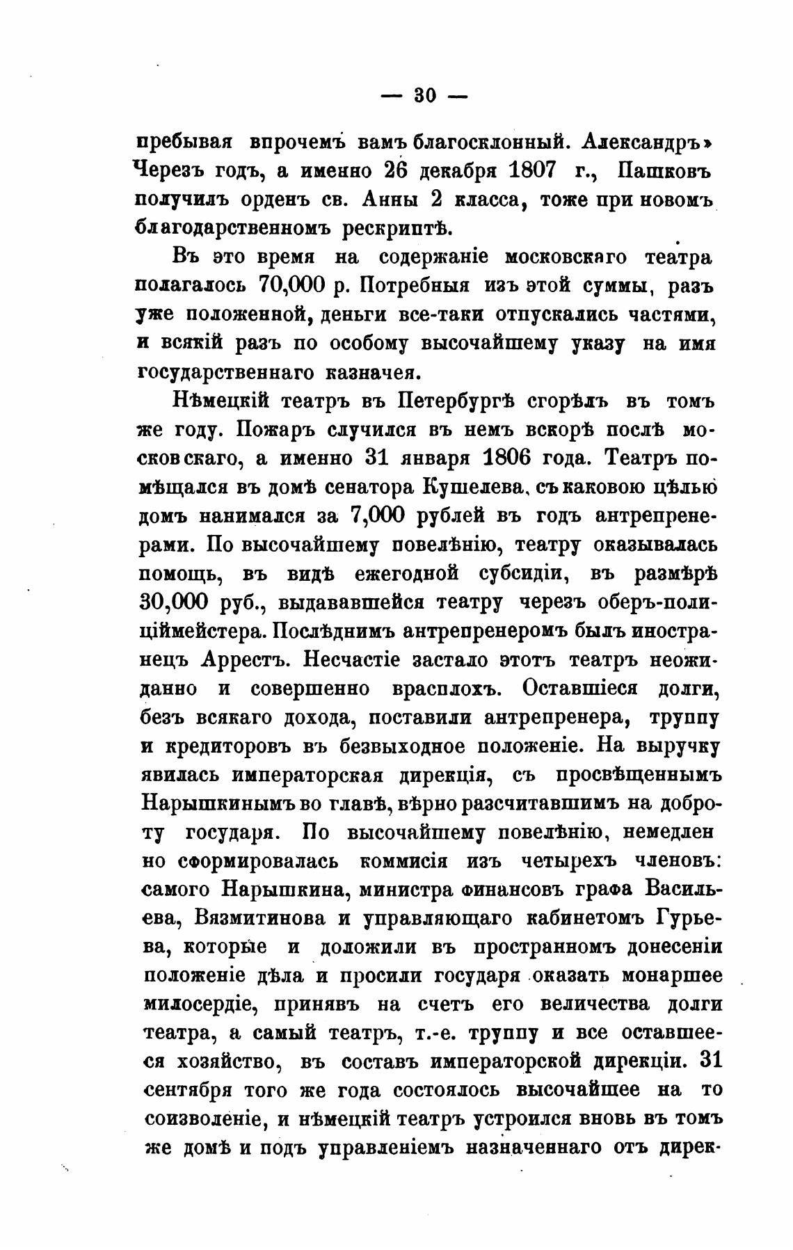 30 ШО руб., выдававшейся театру черезъ оберъ-поди-