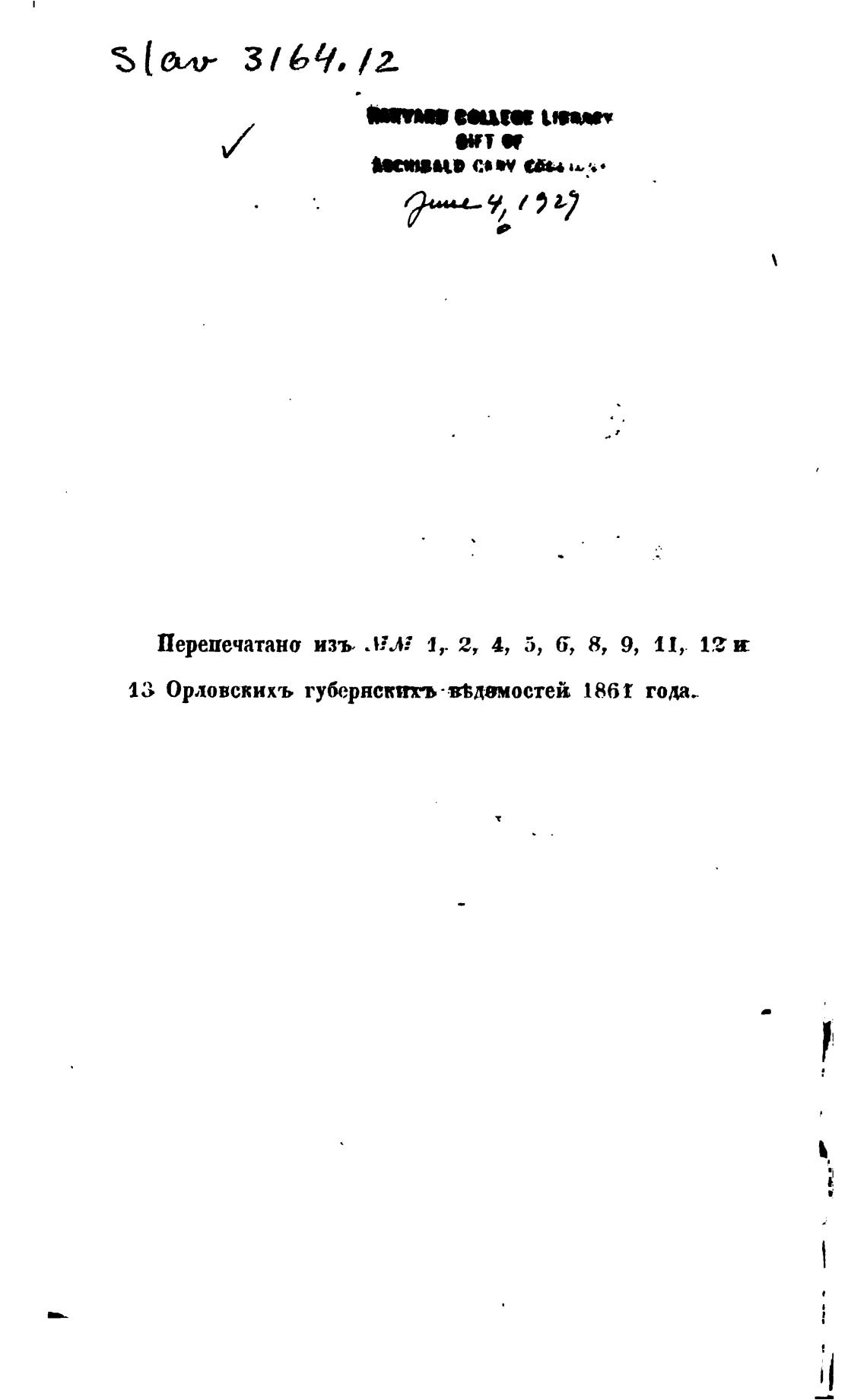 13 Орловскихъ губернсктт•ввлвмостей 186f годае
