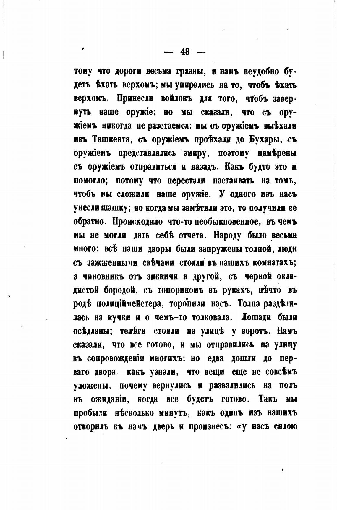 отворил намъ дверь и произнесъ: «у насъ силою