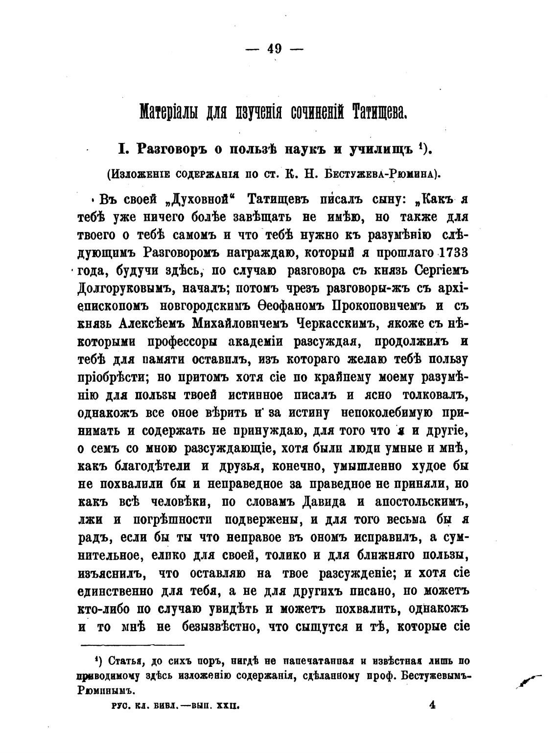 (ИЗЛОЖЕНIЕ СОДЕРЖАНИ ИО СТ. К. Н. БЕСТУЖЕВЛ-Рюминл).