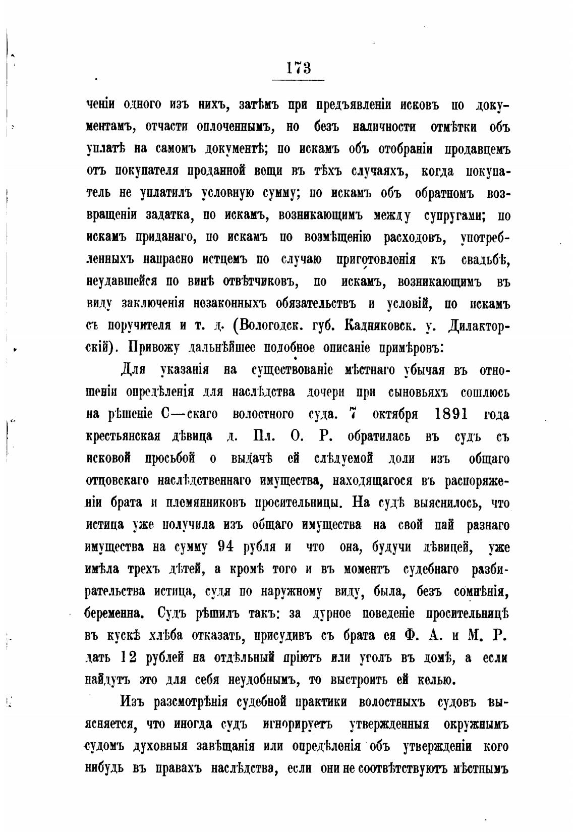 Изъ судебной практики волостныхъ судовъ вы-