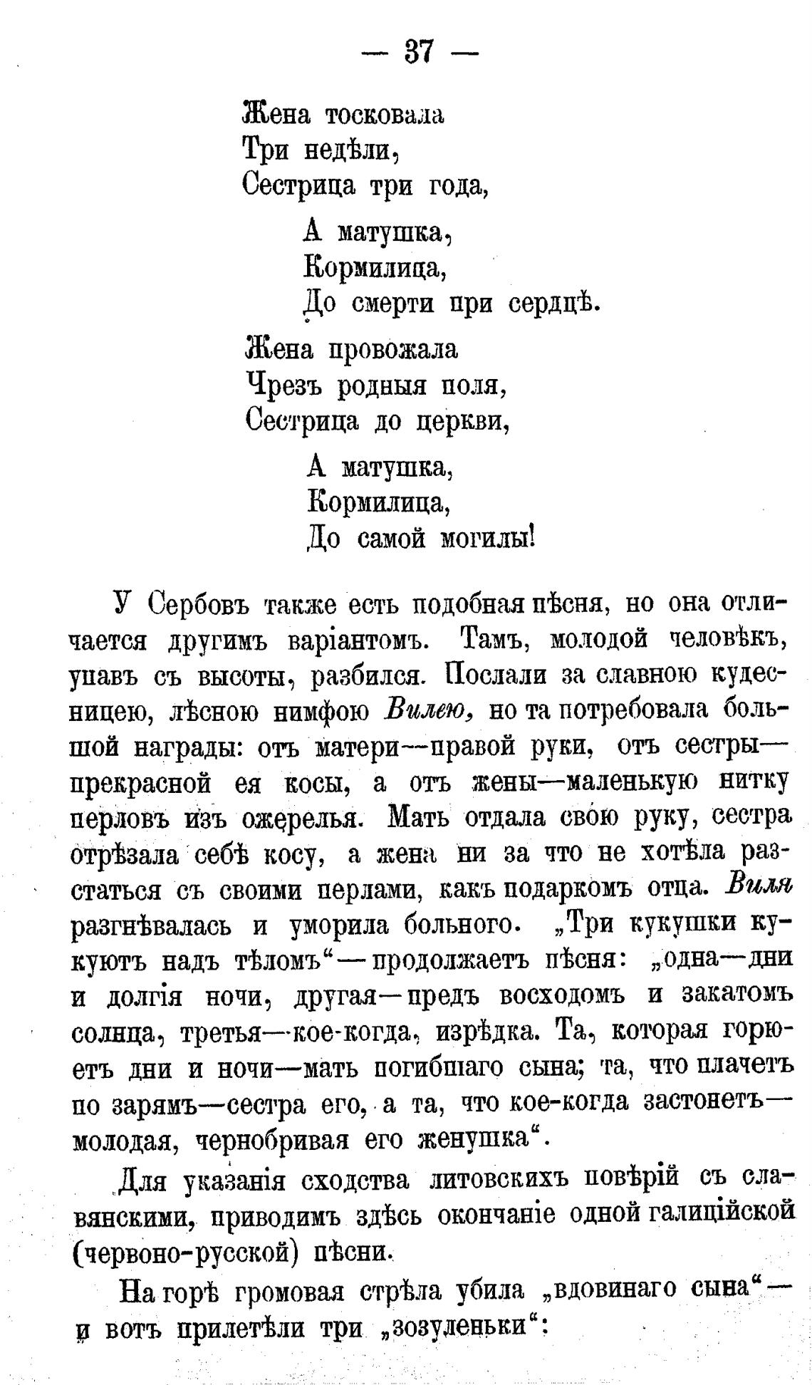 У Сербовъ также есть подобная пвсня, но она отли-