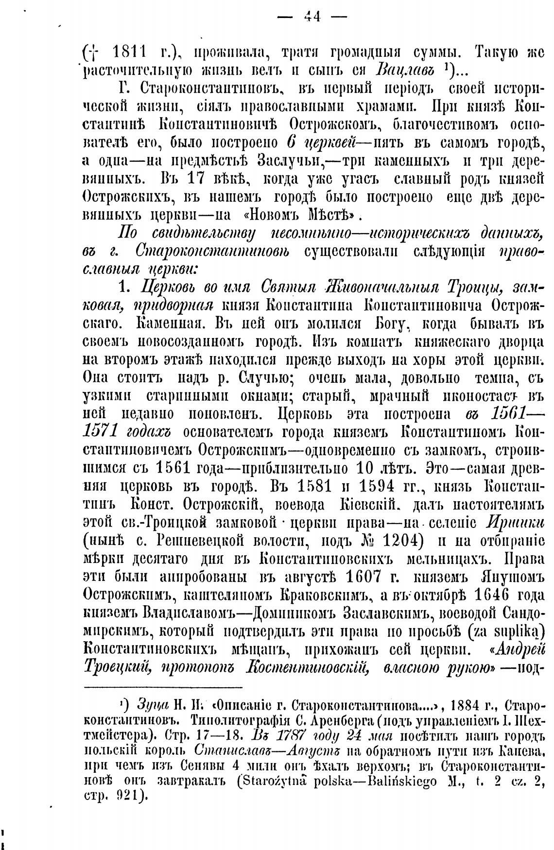1) Н. И; «0111[caHie г. Староконстантинова...» , 1884 г., Старо-