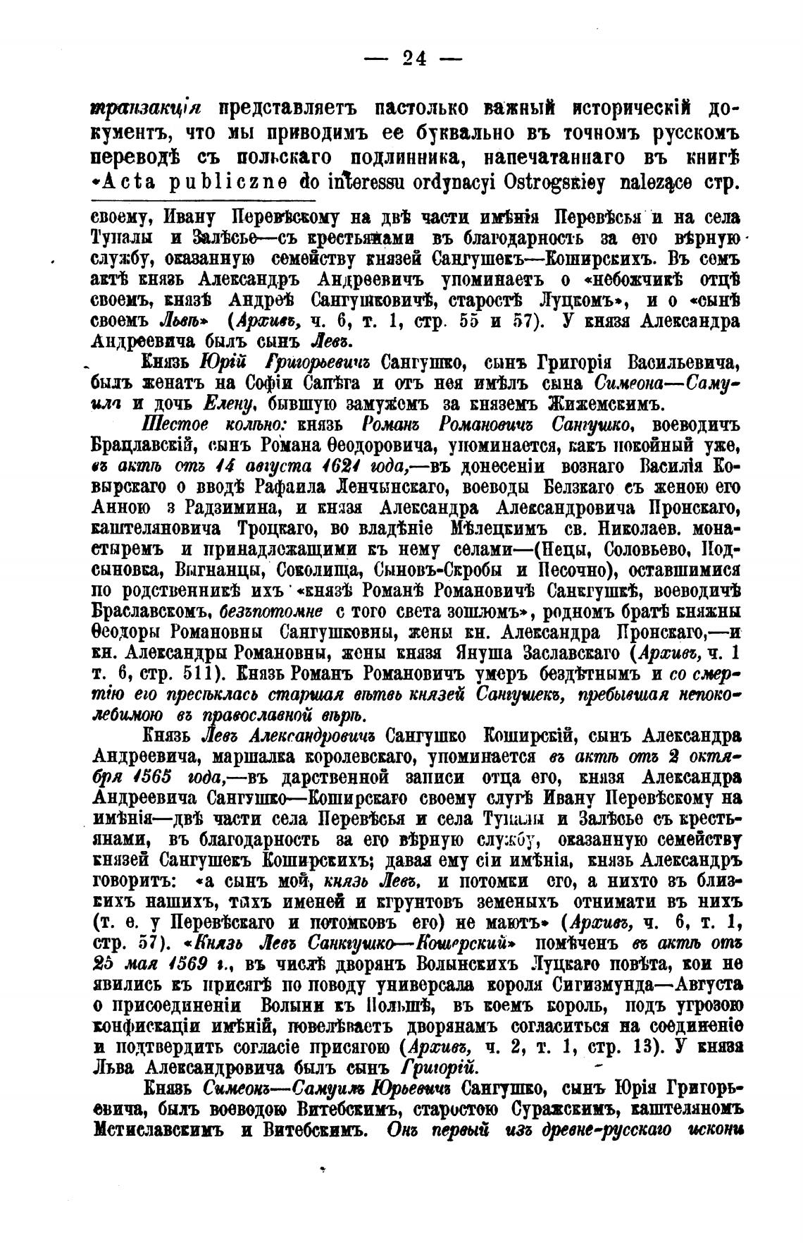 князей Сангушекъ Коширскихъ; давая ему князь Александръ