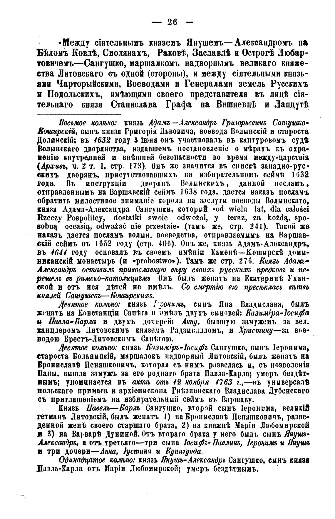 ями Чарторыйскими, Воеводами и Генералами земель Русскихъ