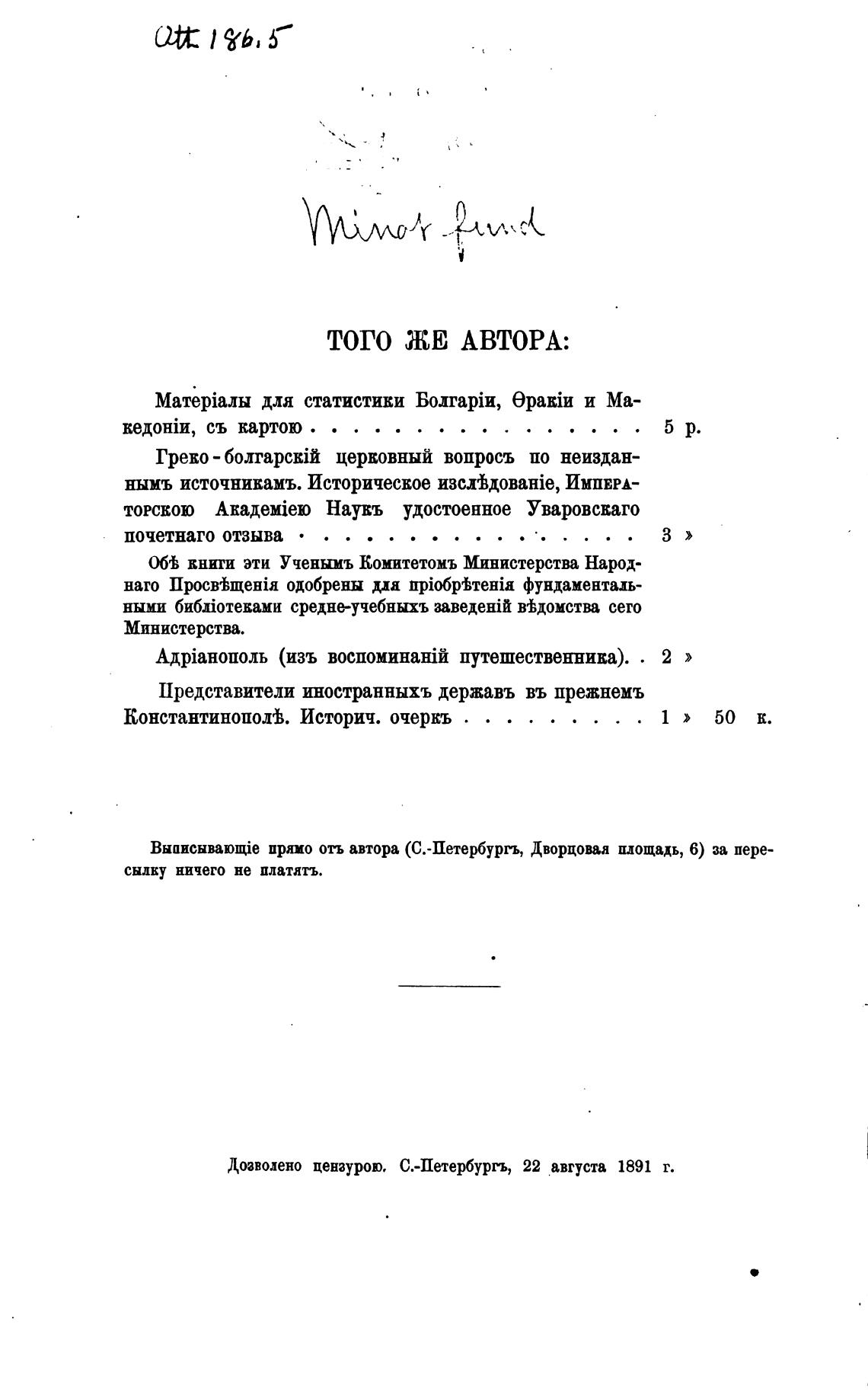Дозволено цензурою, С.-Петербургь, 22 августа 1891 г.