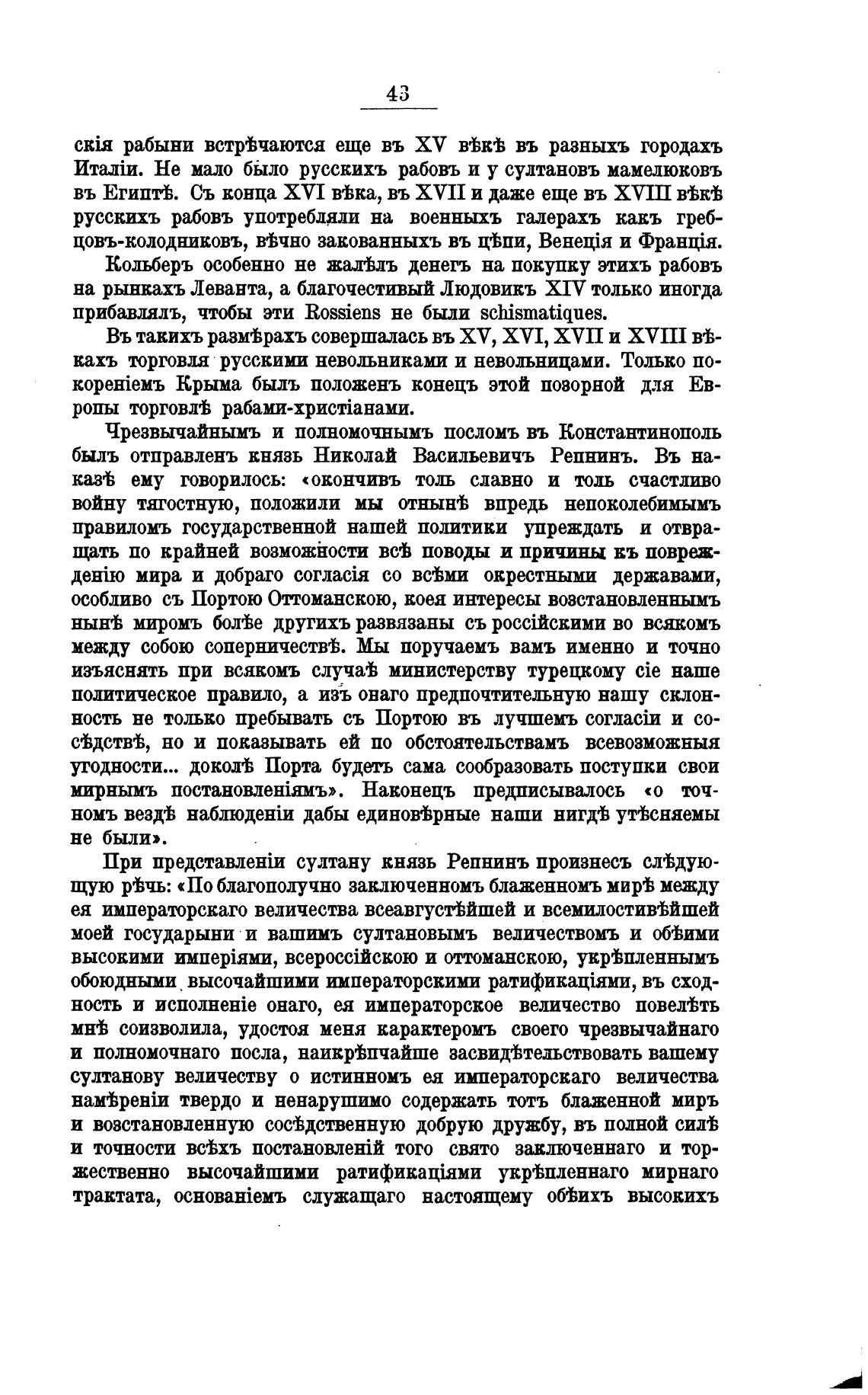 При представлети султану князь Репнинъ произнесъ с.тВдую-