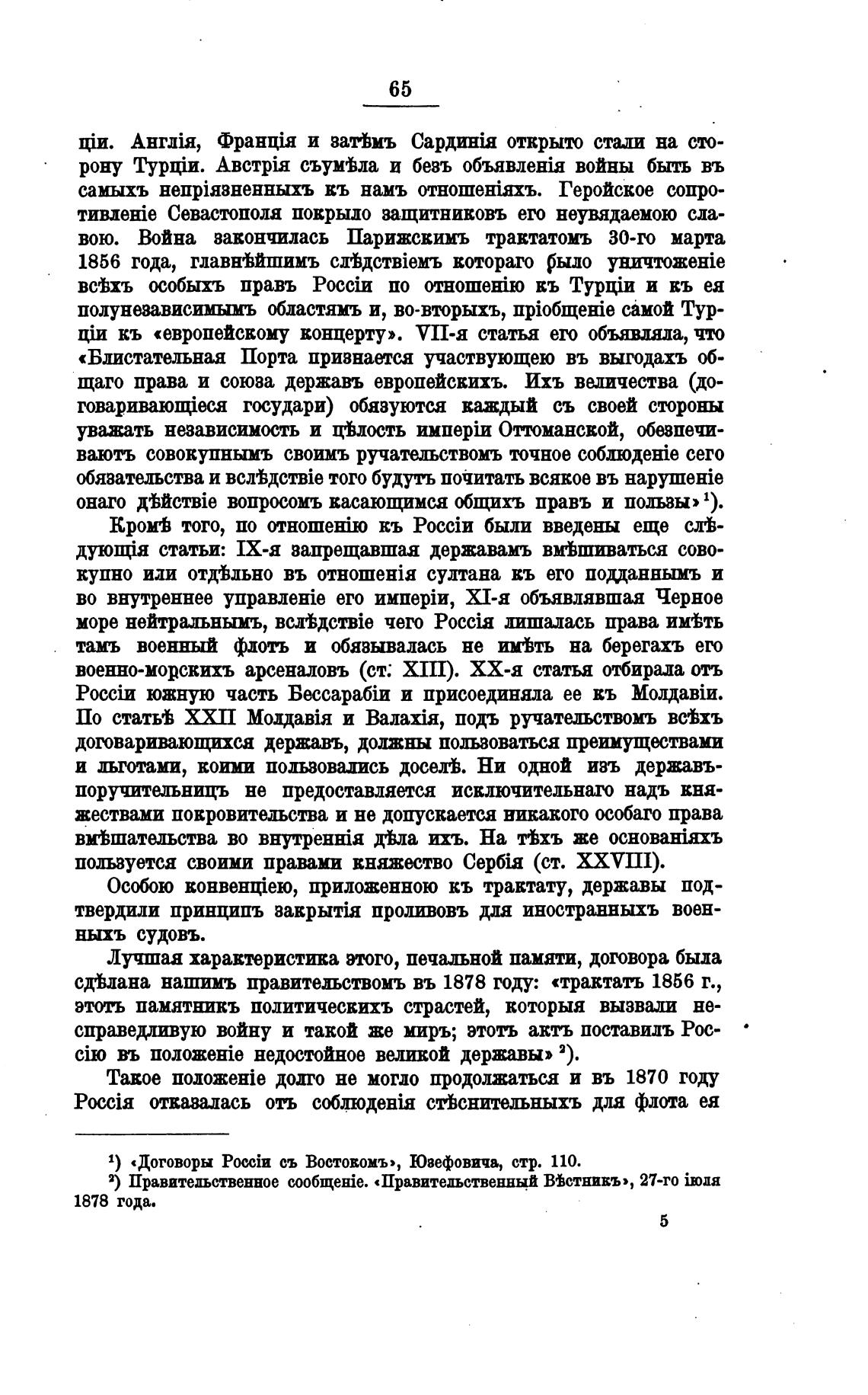 схЬдана нашимъ правительствомъ въ 1878 году: «трактаљ 1856 г.,