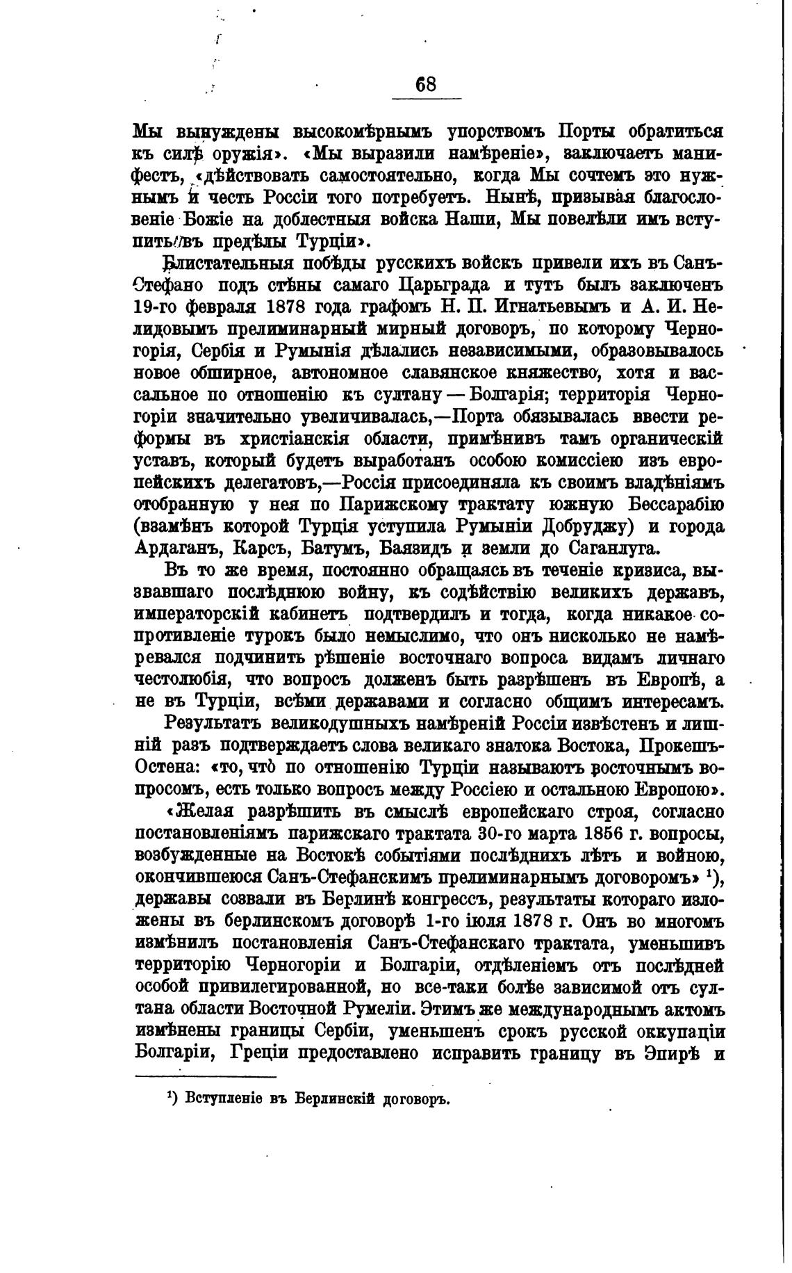 окончившеюся Санъ-Стефанскимъ прелиминарнымъ договоромъ» 1),