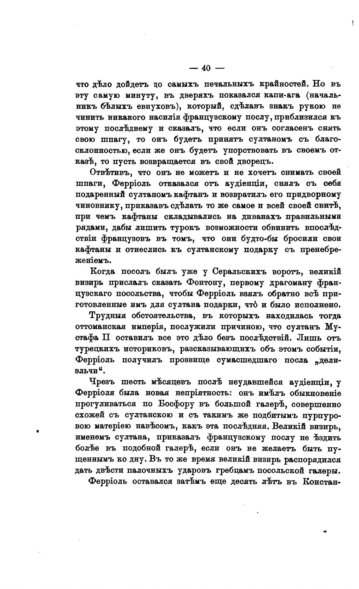именемъ султана, приказалъ французскому послу не Вздить