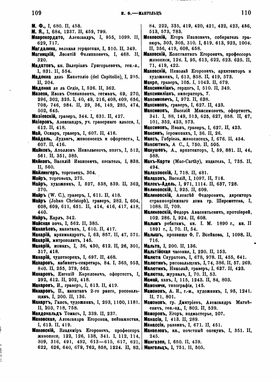 Ma3iackii, граверъ, 344. 1, 631. П, 427.