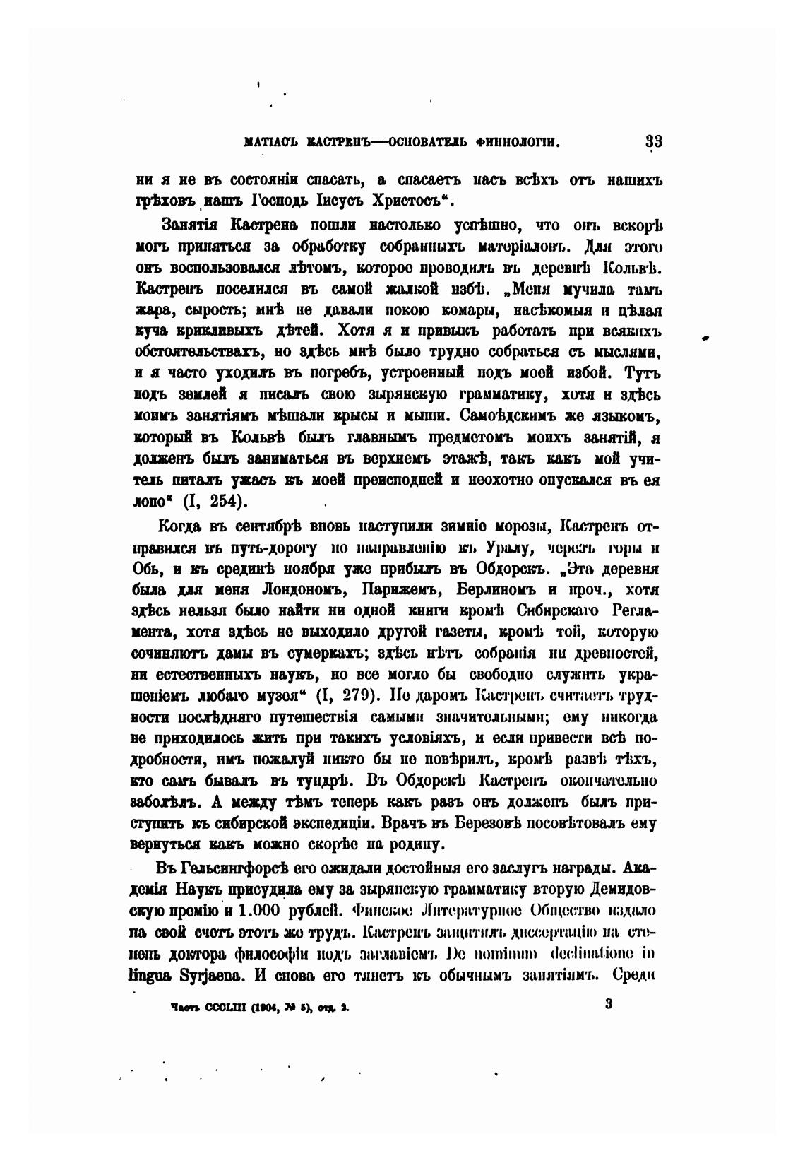 Когда въ шпябр•Ь вновь наступили зимнК) моры, Кастреть от-