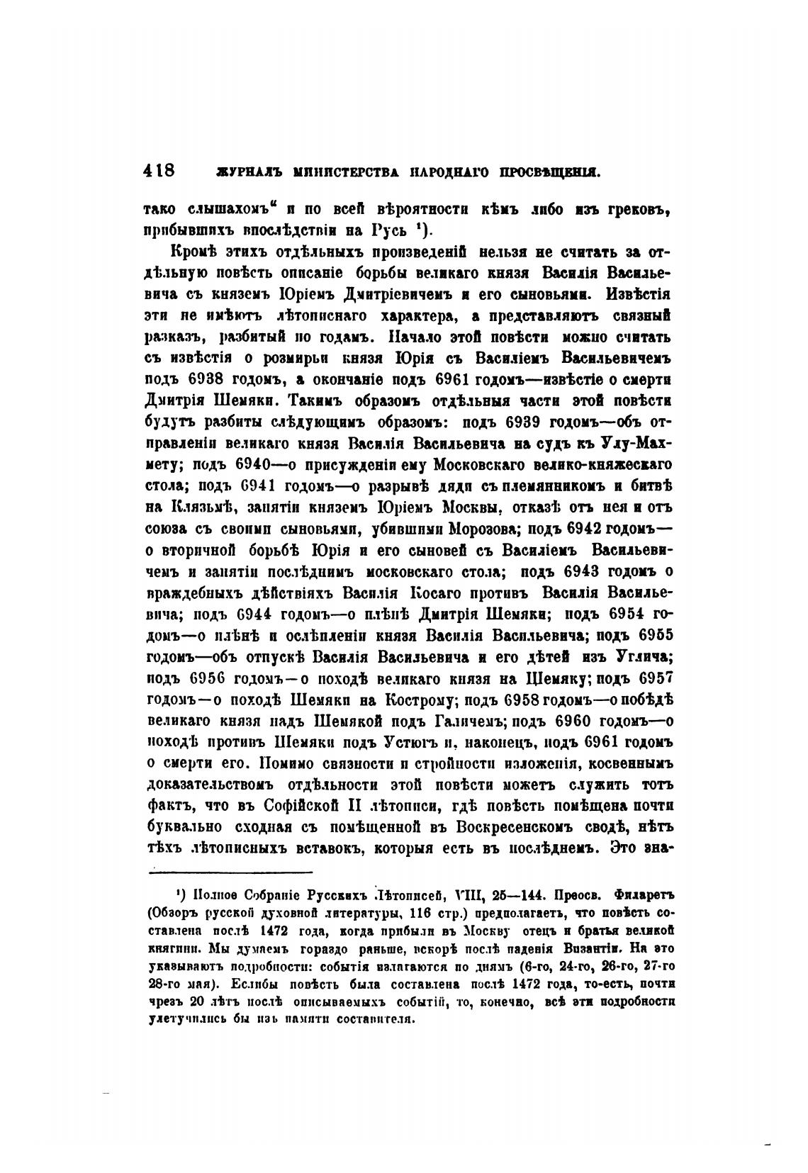 иоход•Ь противь Шемяки подъ Устюрь и, наконецъ, подъ 6961 годонъ